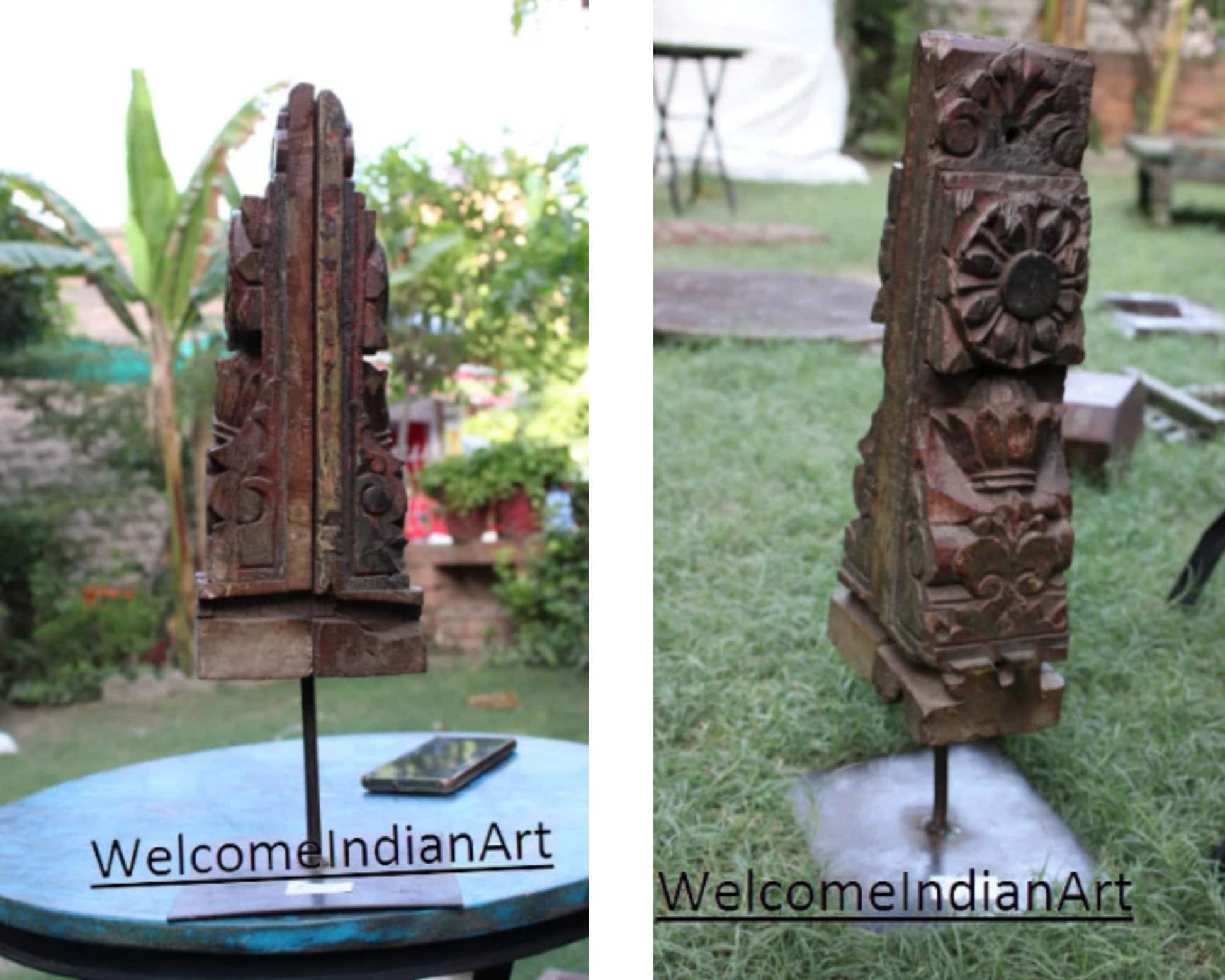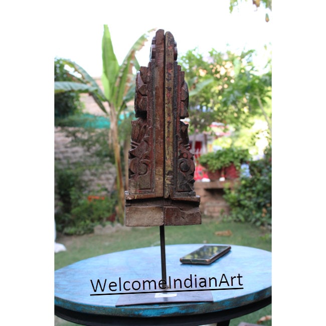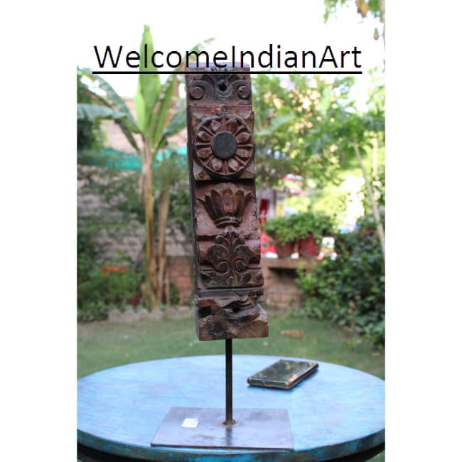 Antique Old Hand Carved Flower Side Table Decor Wooden Shelf Decor Art Wooden Farmhouse Decor Indian Handicraft Antique collectible