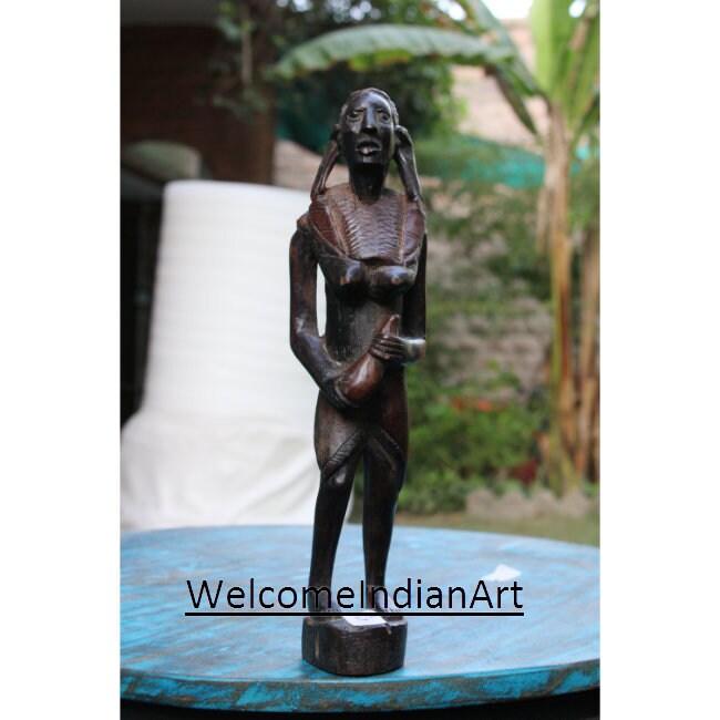 Antique Wooden Old Used Statue Handmade Hand Carved Wooden Man Figurine Home Decor Farmhouse Decor Indian Rare Collectible Handicraft