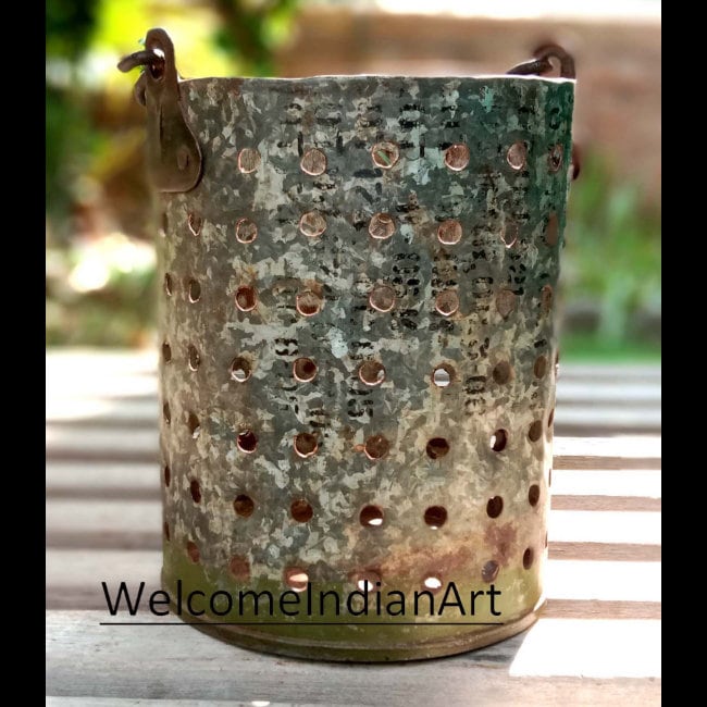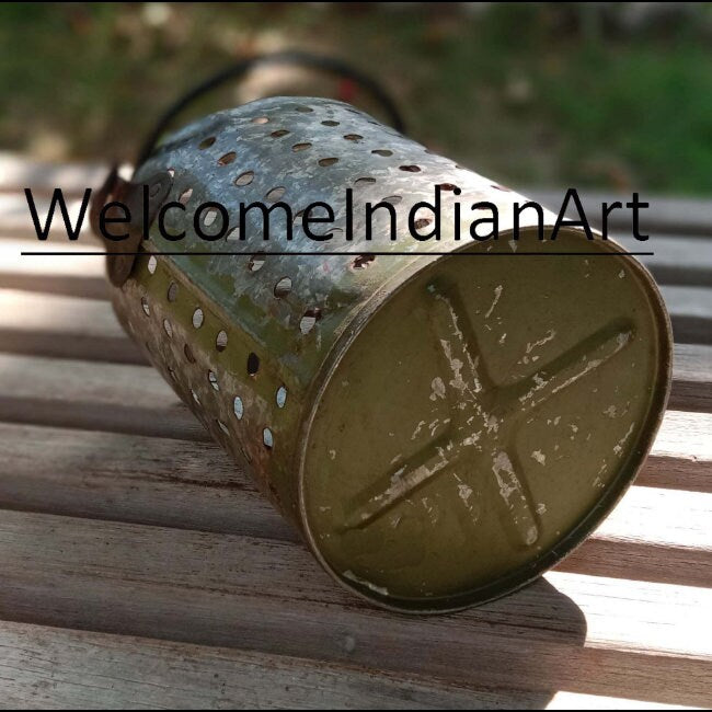 Old Antique Metal Ceiling Hanging Lamp/ Rustic Handmade Recycled Lampshade/ Primitive Hanging Light/ Rustic Farmhouse Decor