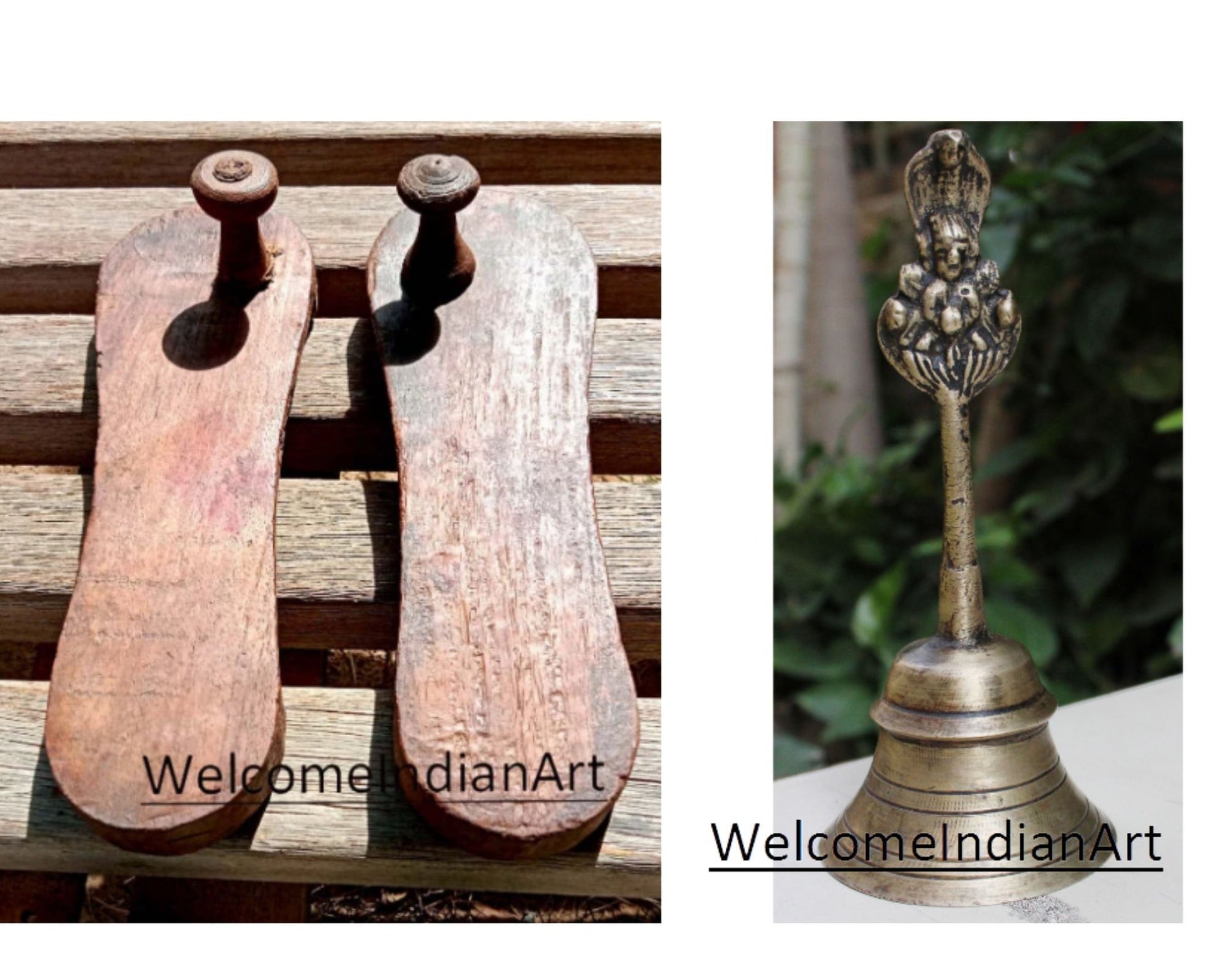 Old Indian Antique Wooden Slipper Shoe Khadau Wooden Item Vintage Brass Bell For Worship Religious Spiritual Decor Antique Decor Collectible