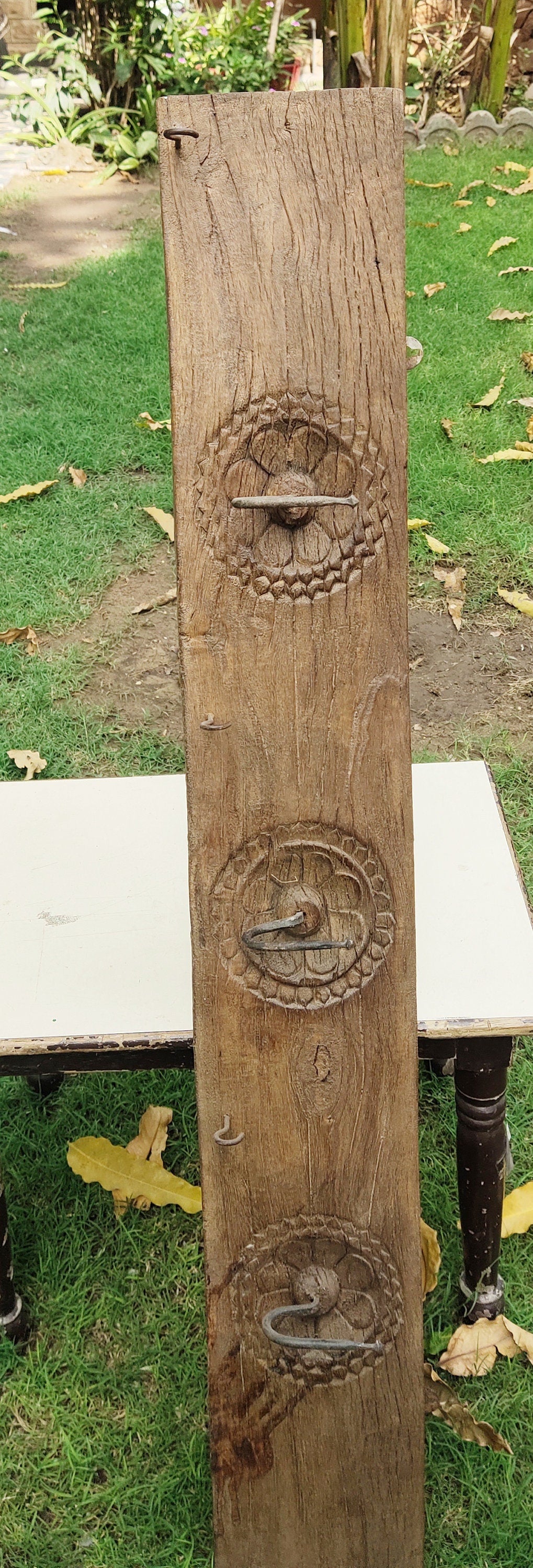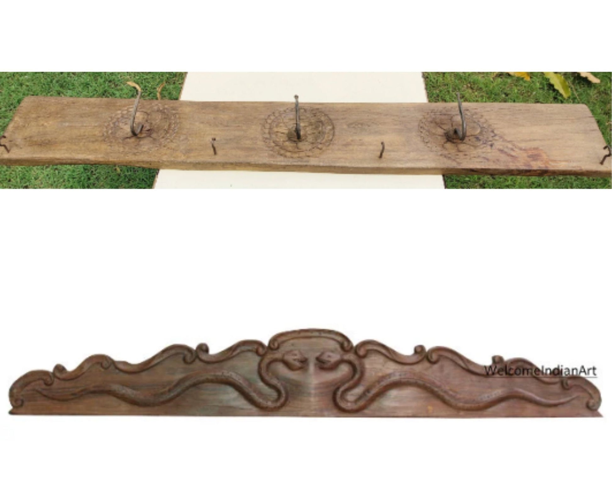 Real Indian Antique Vintage Hand Carved Wood key Hanger Panel Wall Mounted Panel Home Decorative Sculpture Handcrafted Decoration