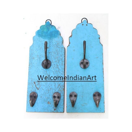 Old Iron Wooden Hook Hanger Antique Key Hanger Hand Made Hanger And old Hanging Wooden Block Hanger Hook 2 pieces