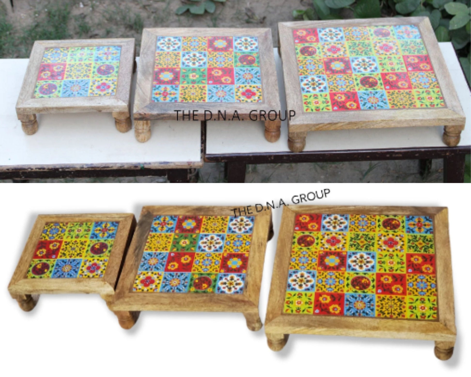 Indian Wooden Chowki/Wooden Handmade Bajot/Wooden Chowki/Handcrafted Low Height Stool Set of 3/Traditional Gift For Mother's Day