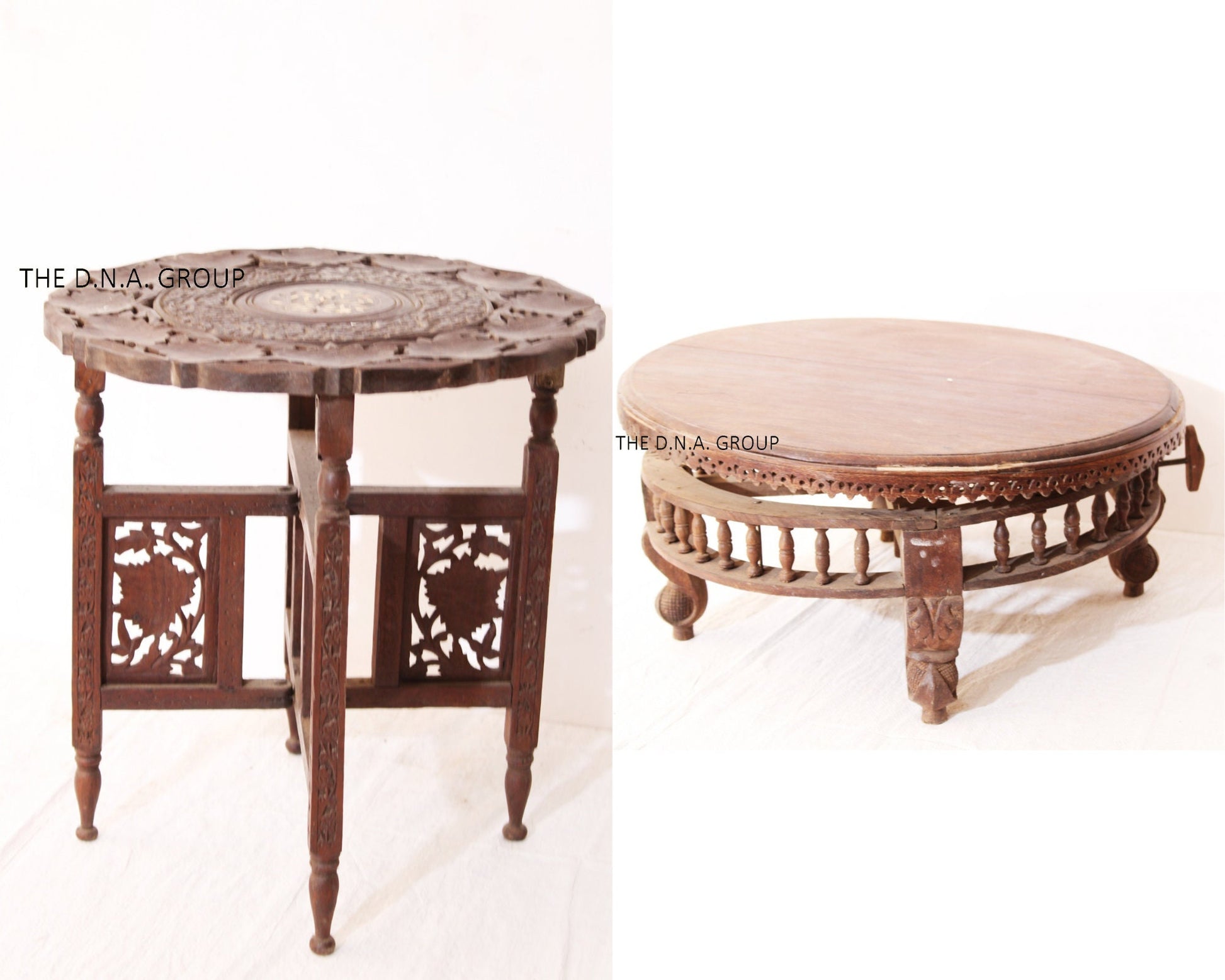 Antique Wooden Carved Table/Folding Handmade Hand Painted Coffee Table/Primitive Table/Indian Personalized Wooden Step Stool/Handcrafted Home Decor