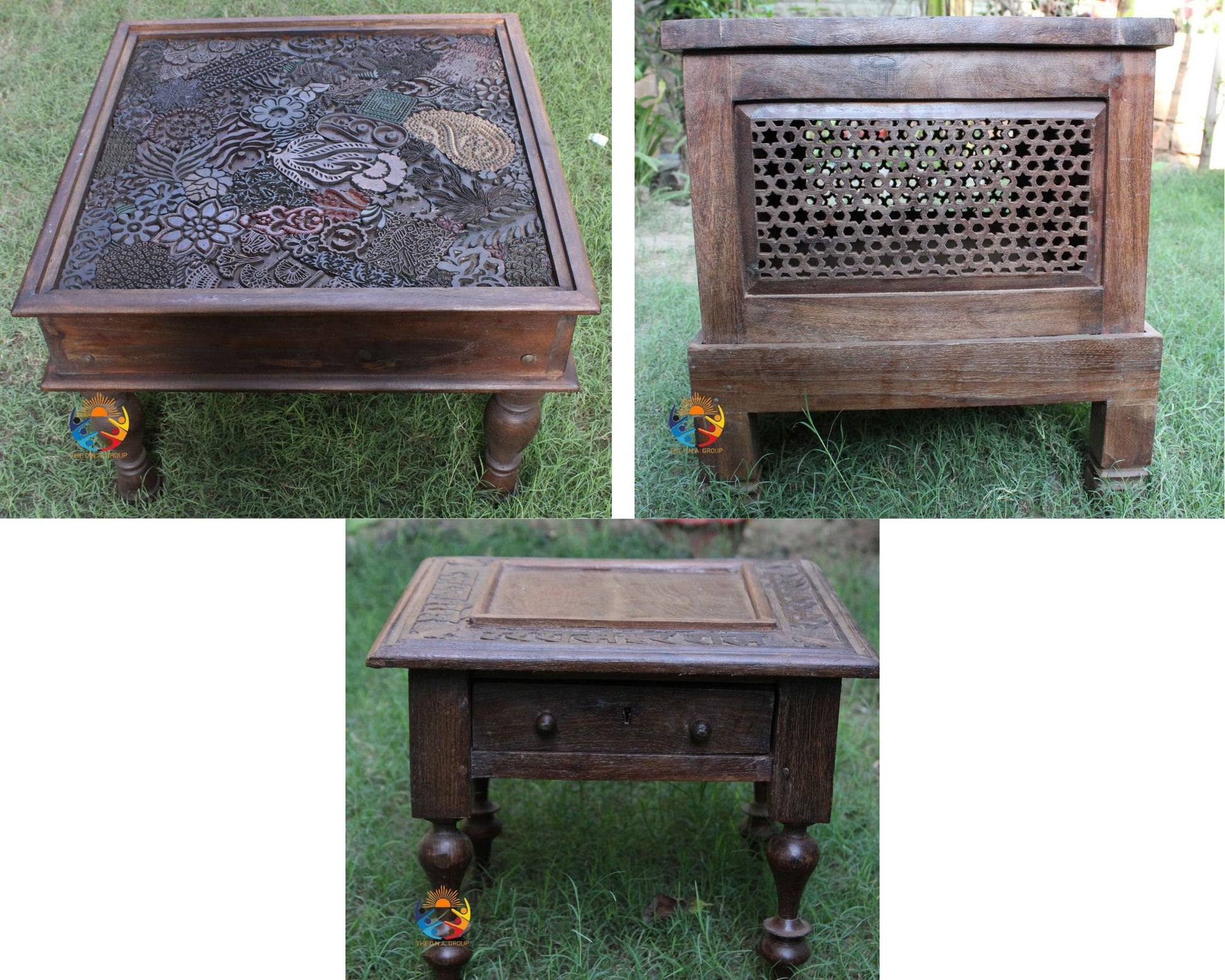 Indian Antique Wooden Coffee Table Beautiful Hand Carved Hand Made Cocktail Center Table Antique Wood Indian Handicraft Furniture Side Table