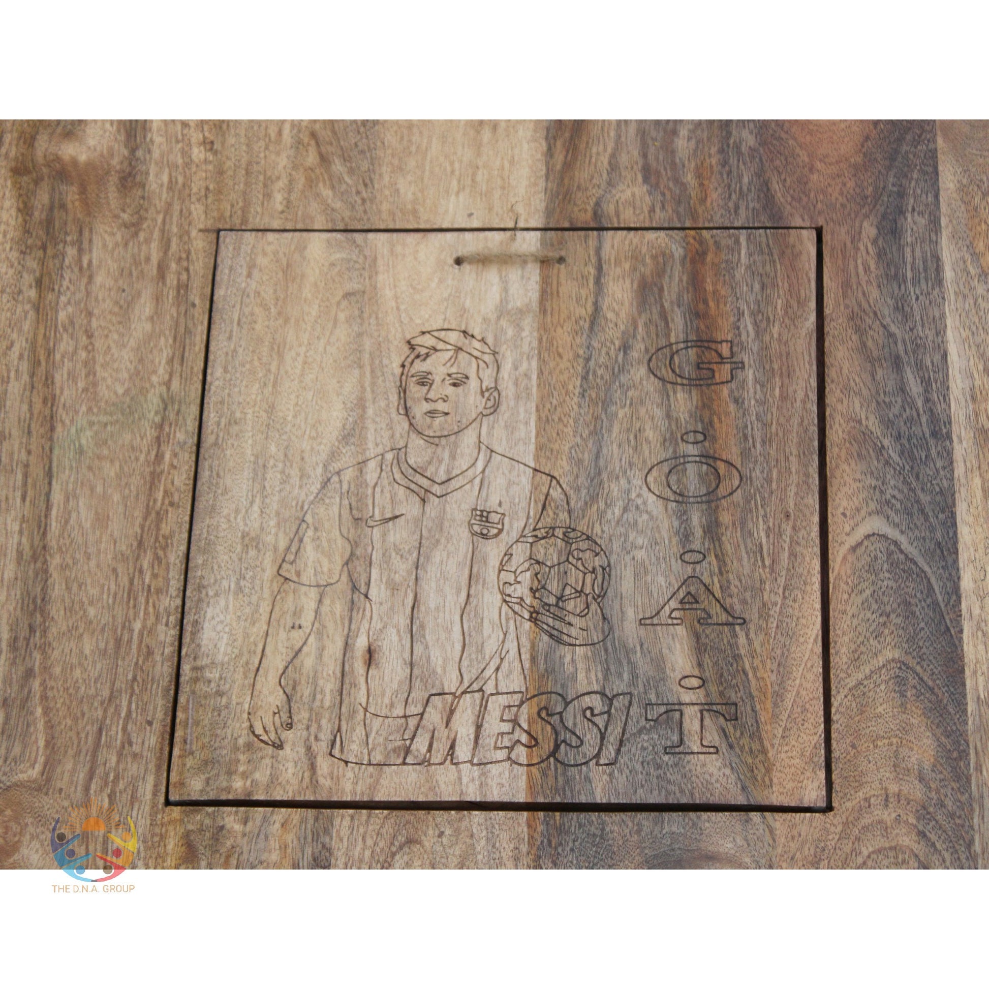 Round Drum Coffee Table Laser Engraved Messi Face, FIFA World Cup Center Table for Football Lovers, Farmhouse Elegant Storage End Desk Wood.