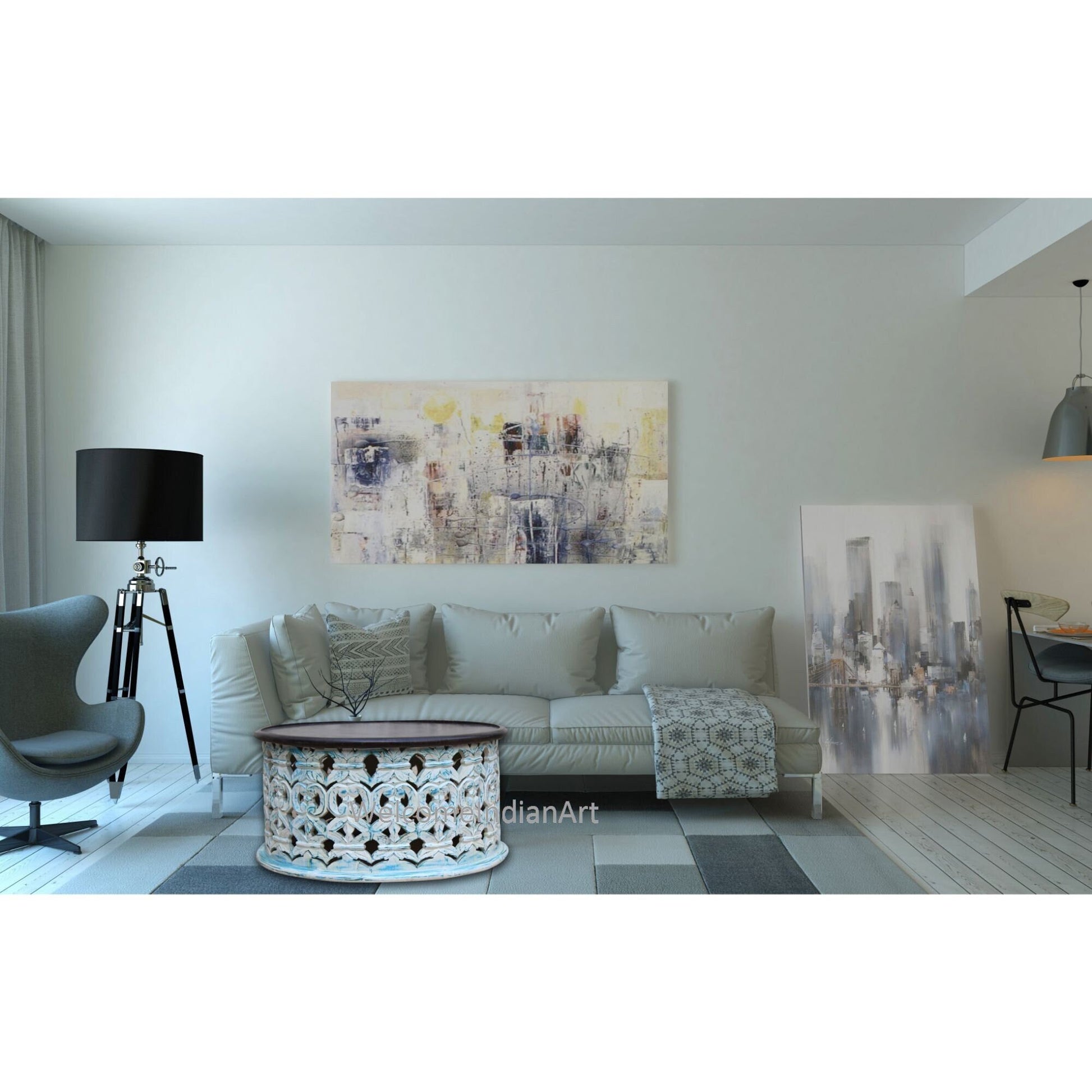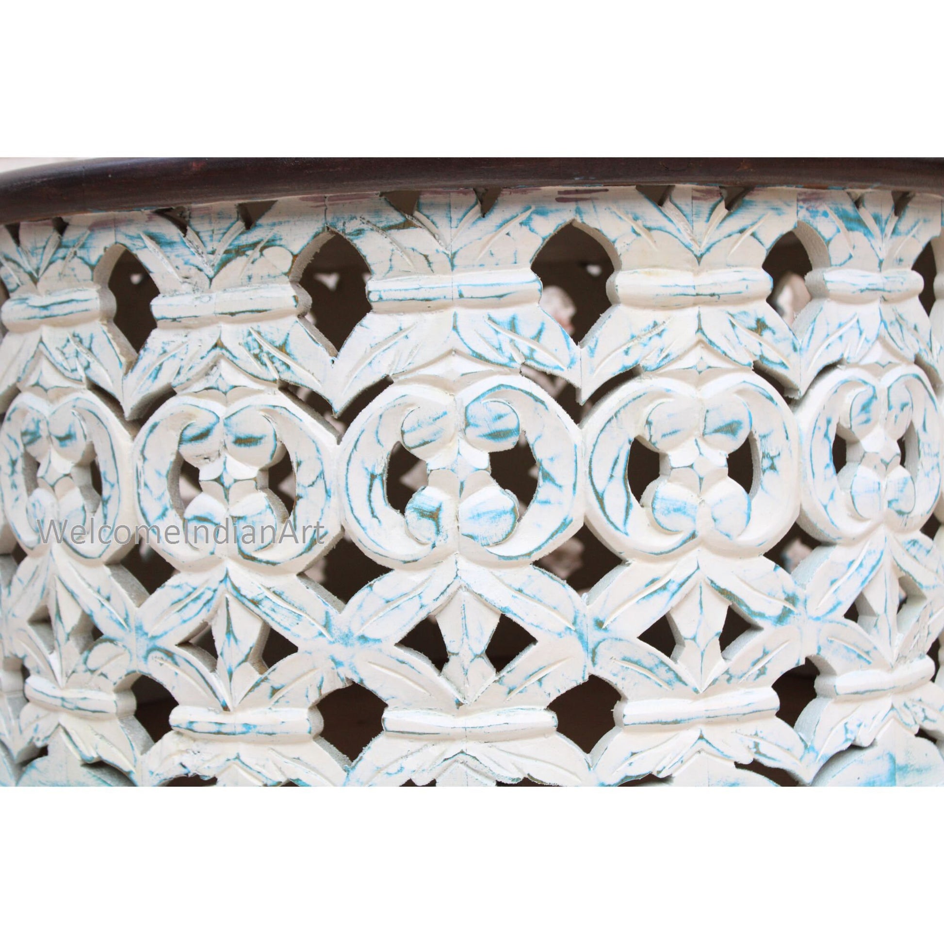 Round Wood Coffee Table 31"x31"x16"/ Living Room Center Table/ Handcarved Low Modern Lattice/ Home Decor Indian Handicraft Art