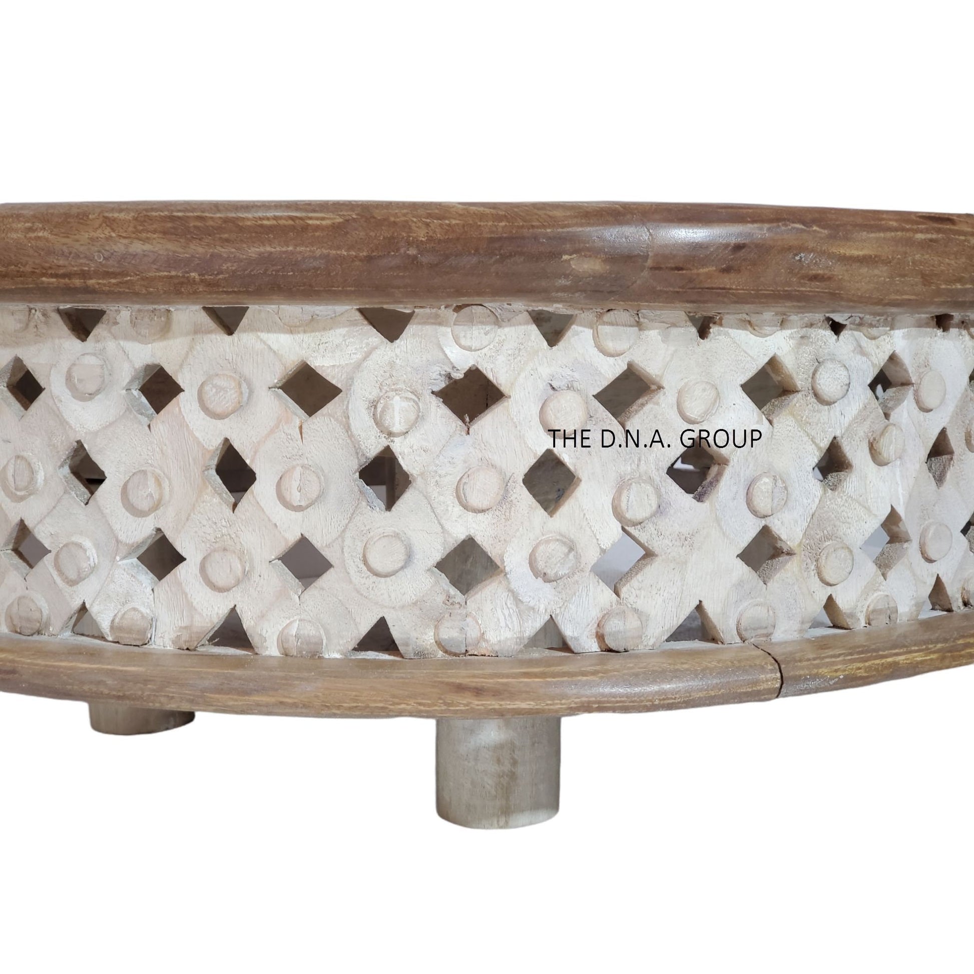 โœ” Elegantly designed table by expert artists in drum shape is made up of ๐Œ๐€๐๐†๐Ž wood hand made carved.