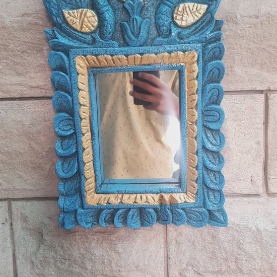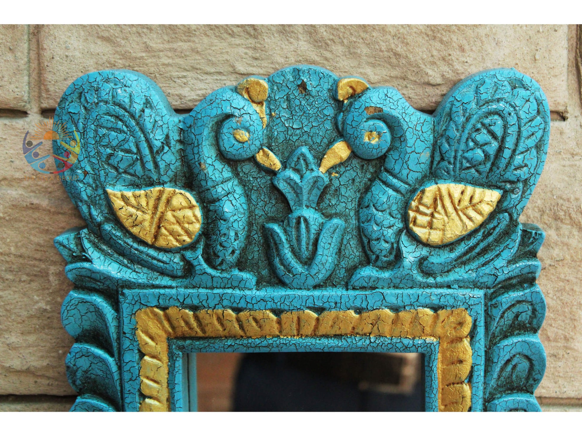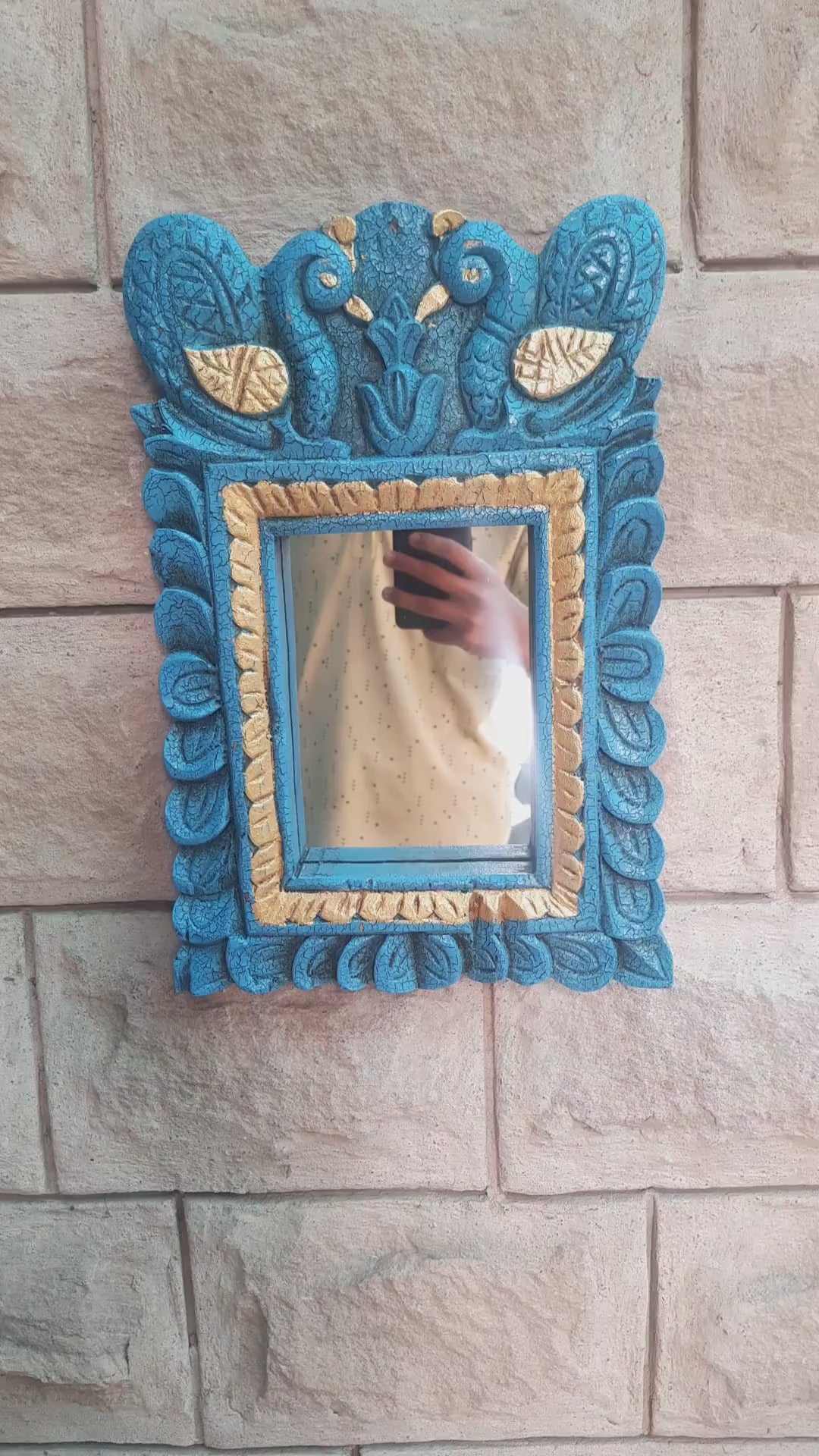 🎨 Painted in royal blue and antique gold with detailed hand carvings – a timeless statement piece.
