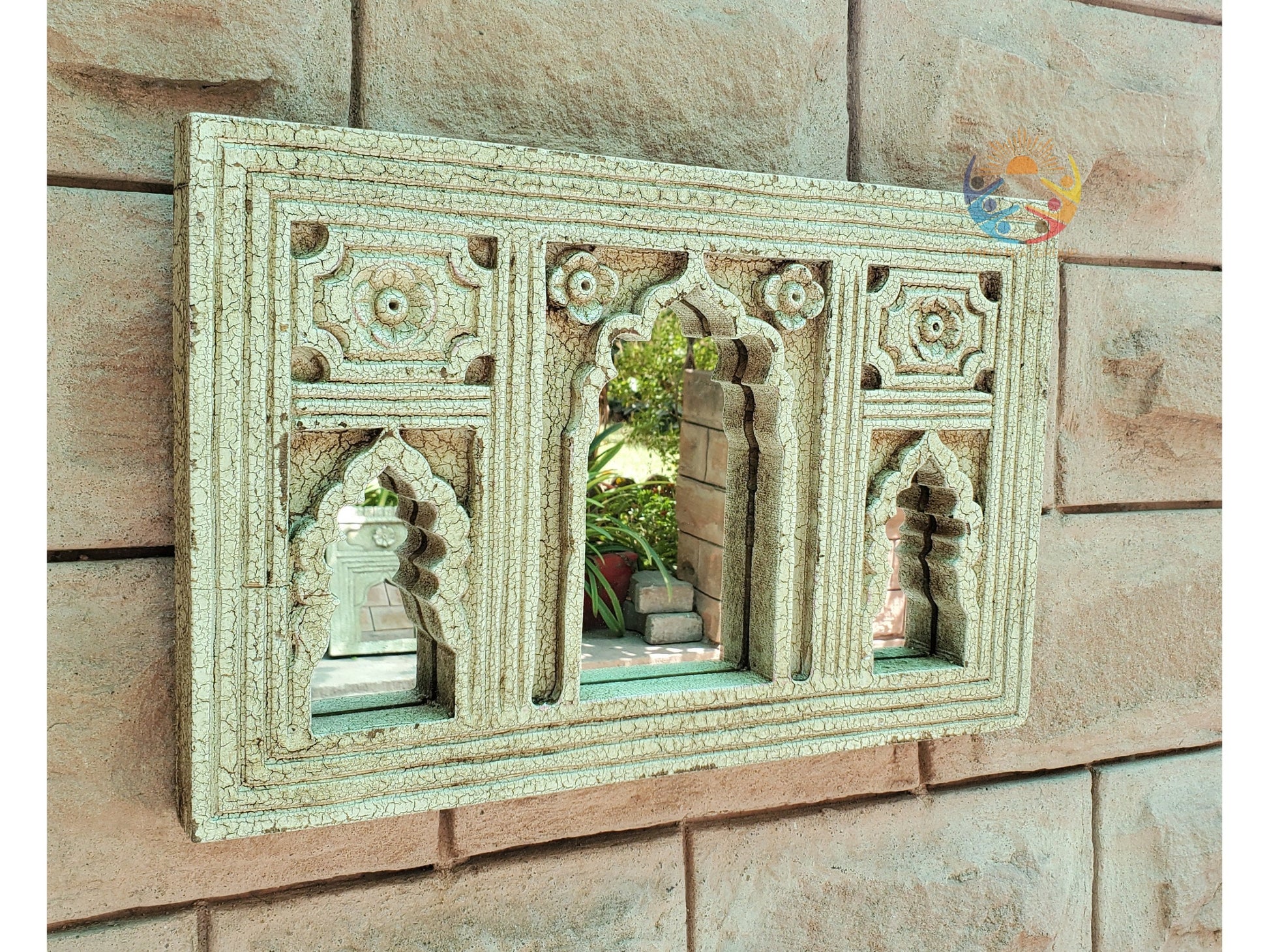 This beautiful wall décor piece is made in wood and has a traditional and ethnic "Crackle" painting done on it by hand and old applied process.