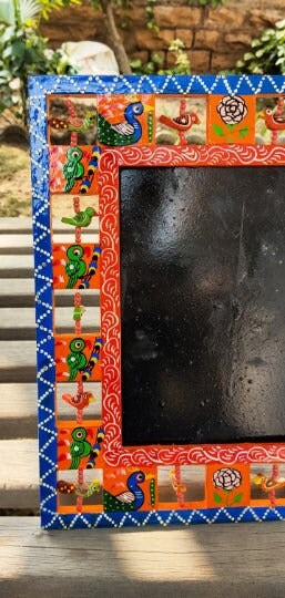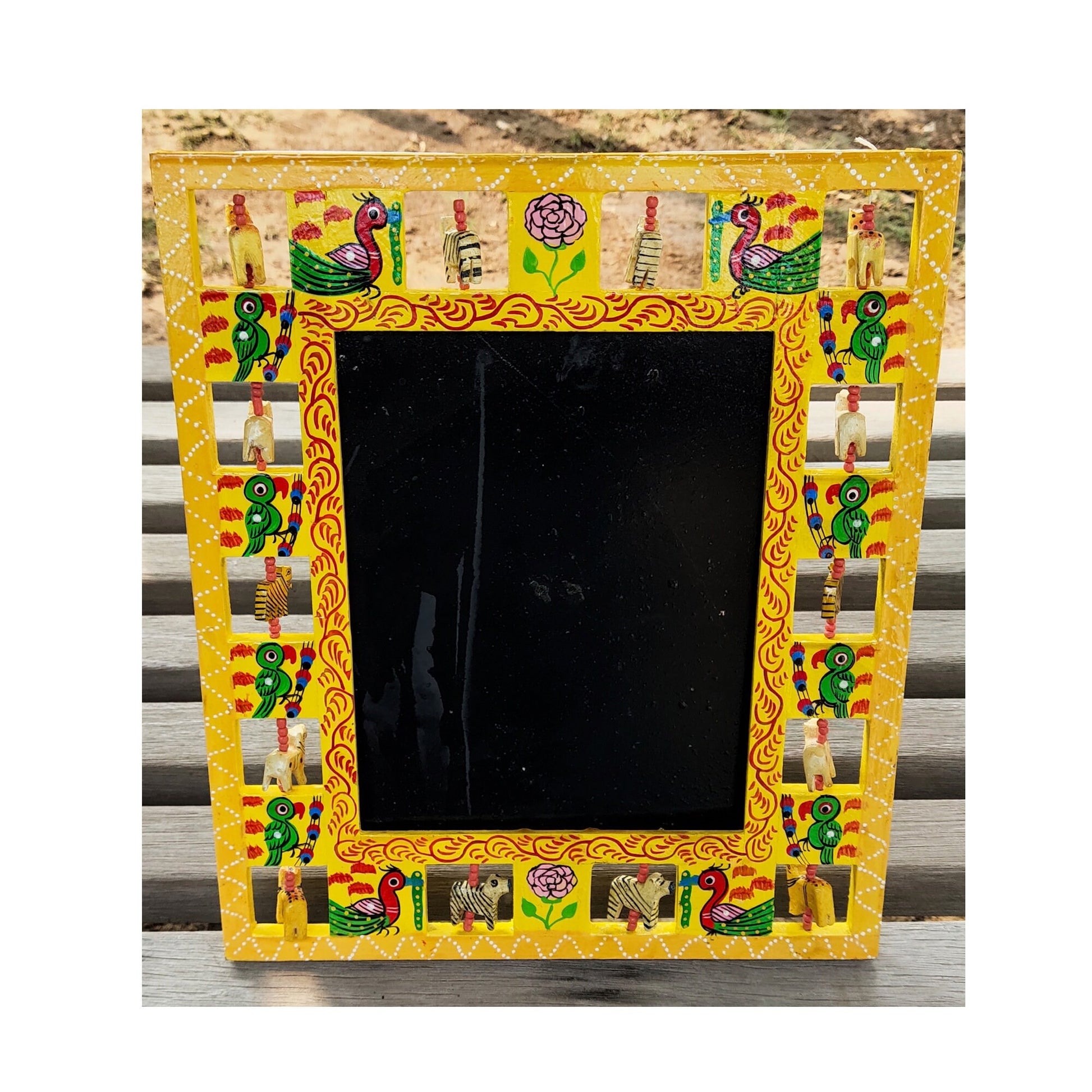 A perfect way to transform your table. This Photo Frame is made of wood. Its beautiful colour combinations makes it very attractive. The painting done on it is called the Emboss Painting which is a specialty Of Rajasthan.