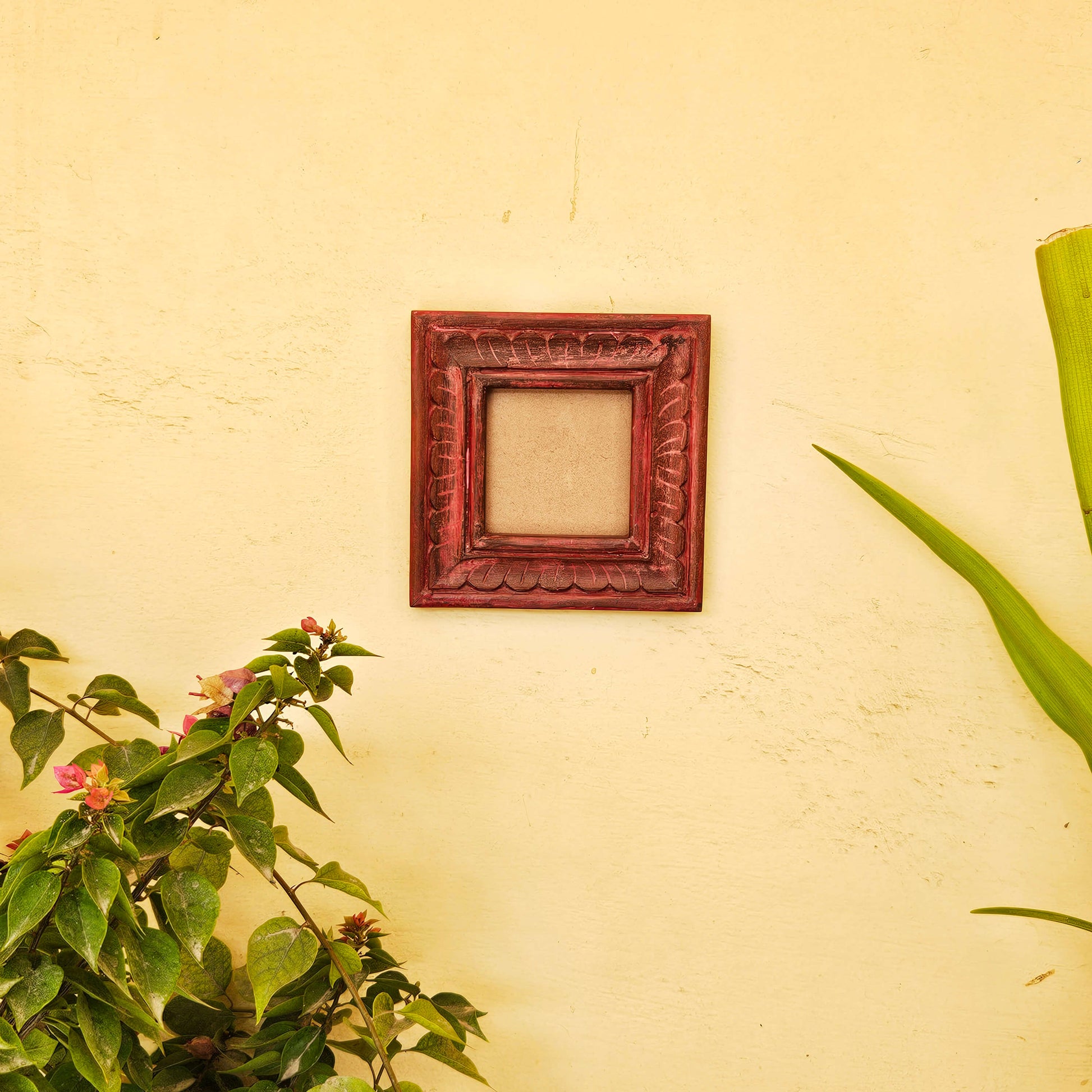 Wooden Photo Frame/Hand Carved Rustic Small Picture Frame/Handcrafted Teak Wooden Vintage Collectible Wall Art Family/ Valentine Gift Decor