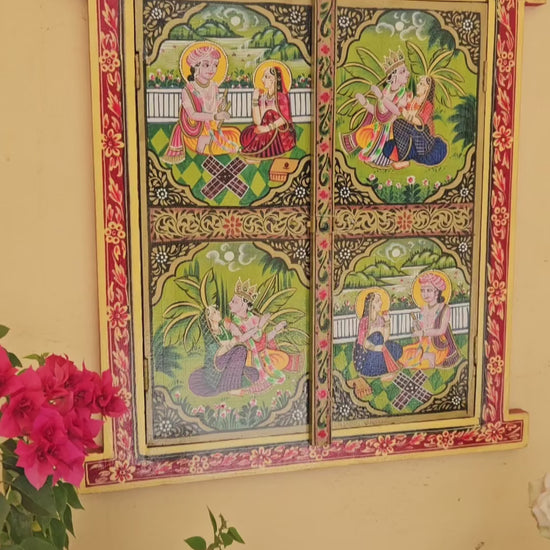Hand Painted Wooden Window Wall Hanging Wall Décor Traditional Radha Krishna Hand Painting Window Farmhouse Decor Indian Window Sculpture