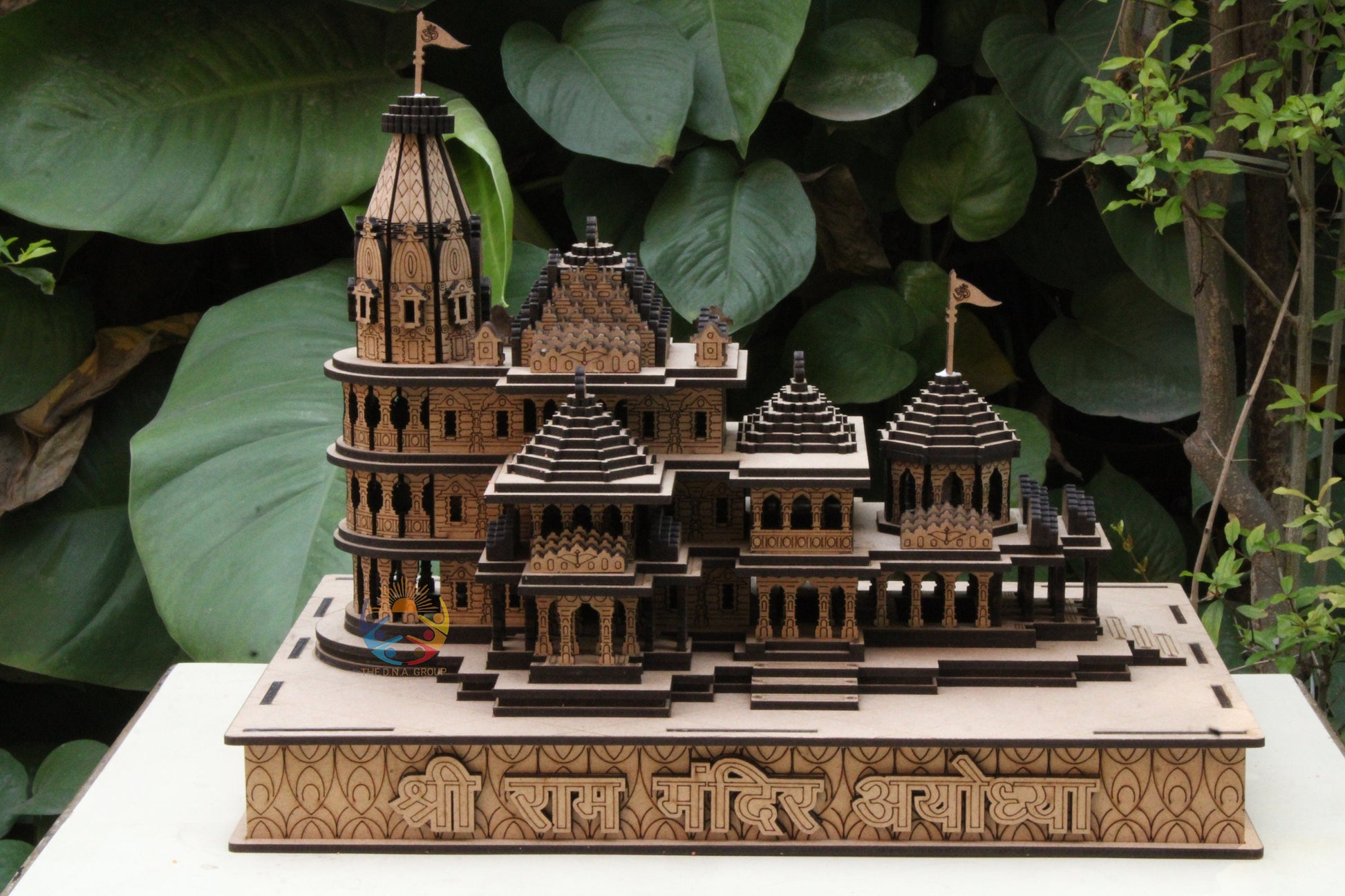 Ram Mandir Ayodhya Wood 3D Model Ram BirthPlace Hindu Temple Replica LED Light Child Rama Miniature Shrine Religious Gift Free Delivery