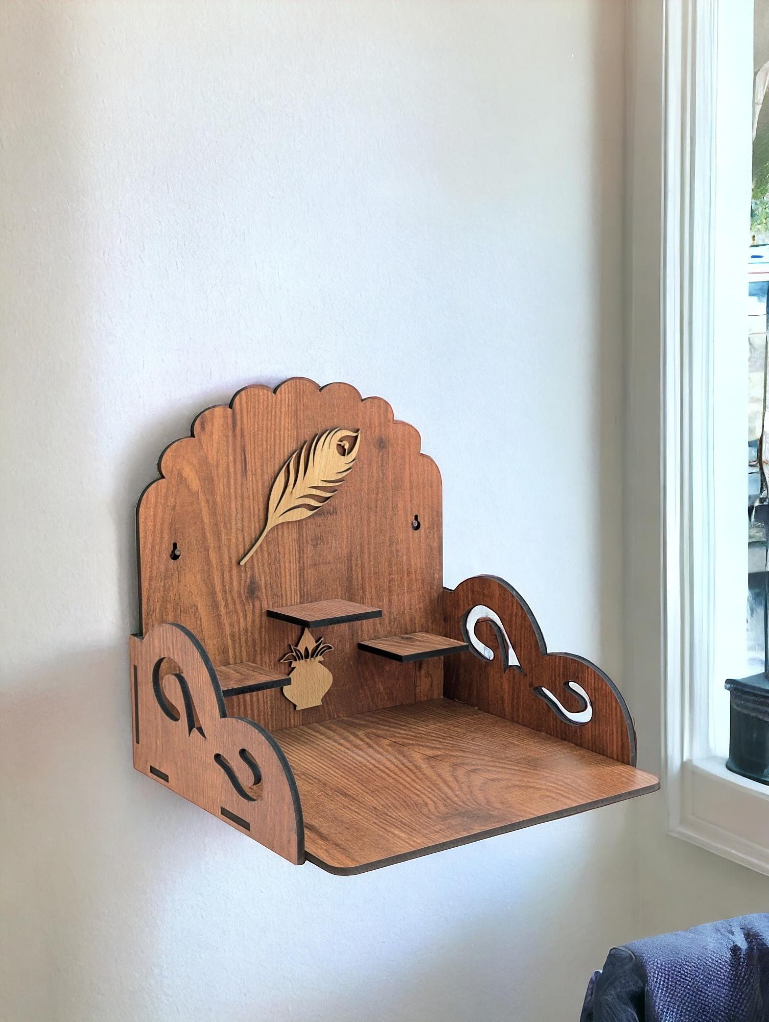 Folding Mandir, Wooden Wall Temple, Mounted Pooja Shelf, CNC Home Temple, Compact Hindu Prayer Altar, Shrine, Traditional Temple Decor Gifts