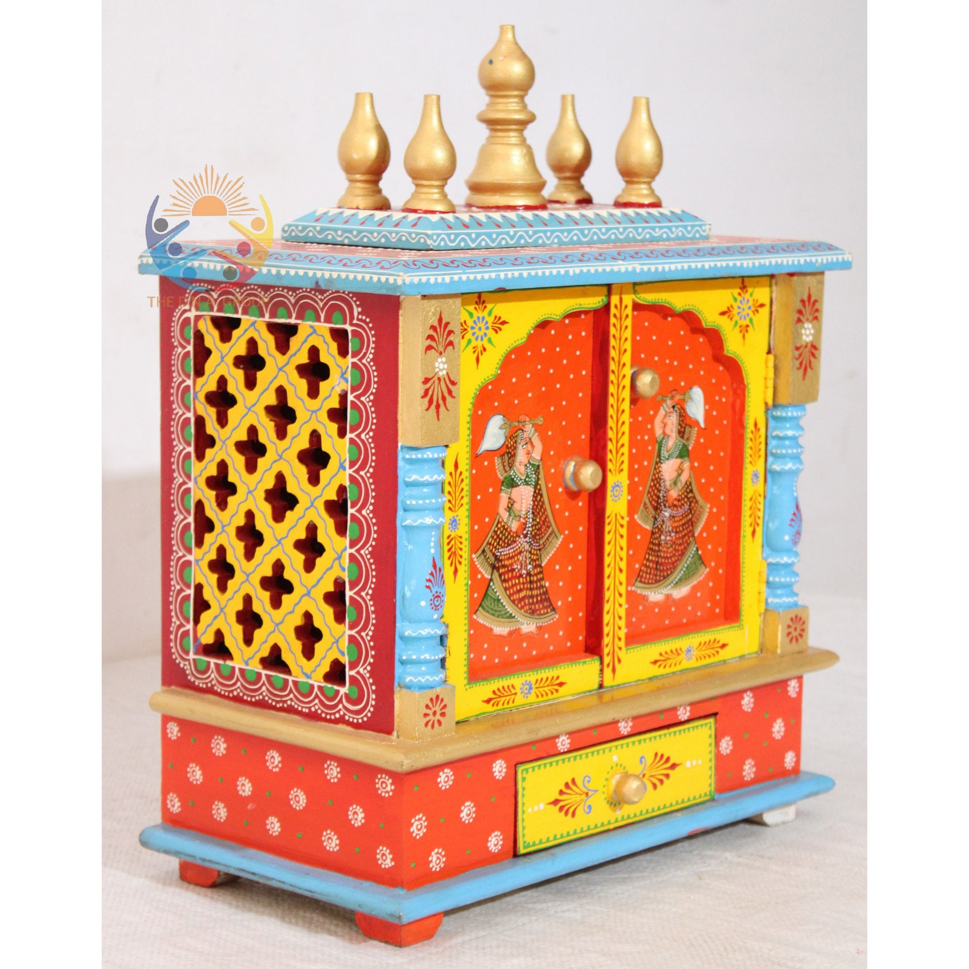 Wooden Temple Pure Rosewood Hindu Pooja Mandir For Home Indian Mandpam Handmade Shrine Home Office Wall Decor Indian Art