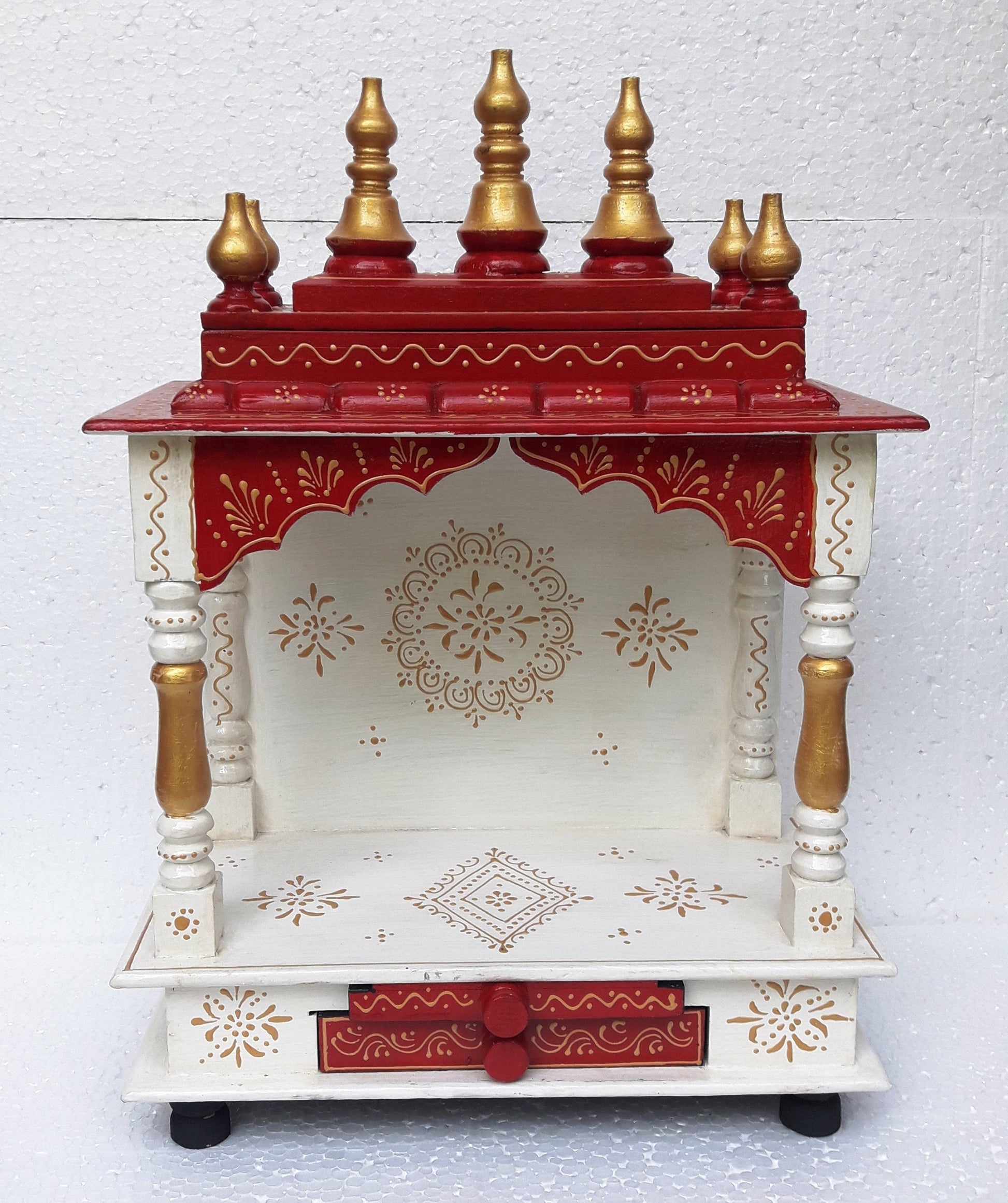 Wooden Mandir Temple Pooja Ghar Mandapam Altar Shrines Cabinet Stand Religious Wall Mount Decor Designer Art Temple Religious Hindu Gifts