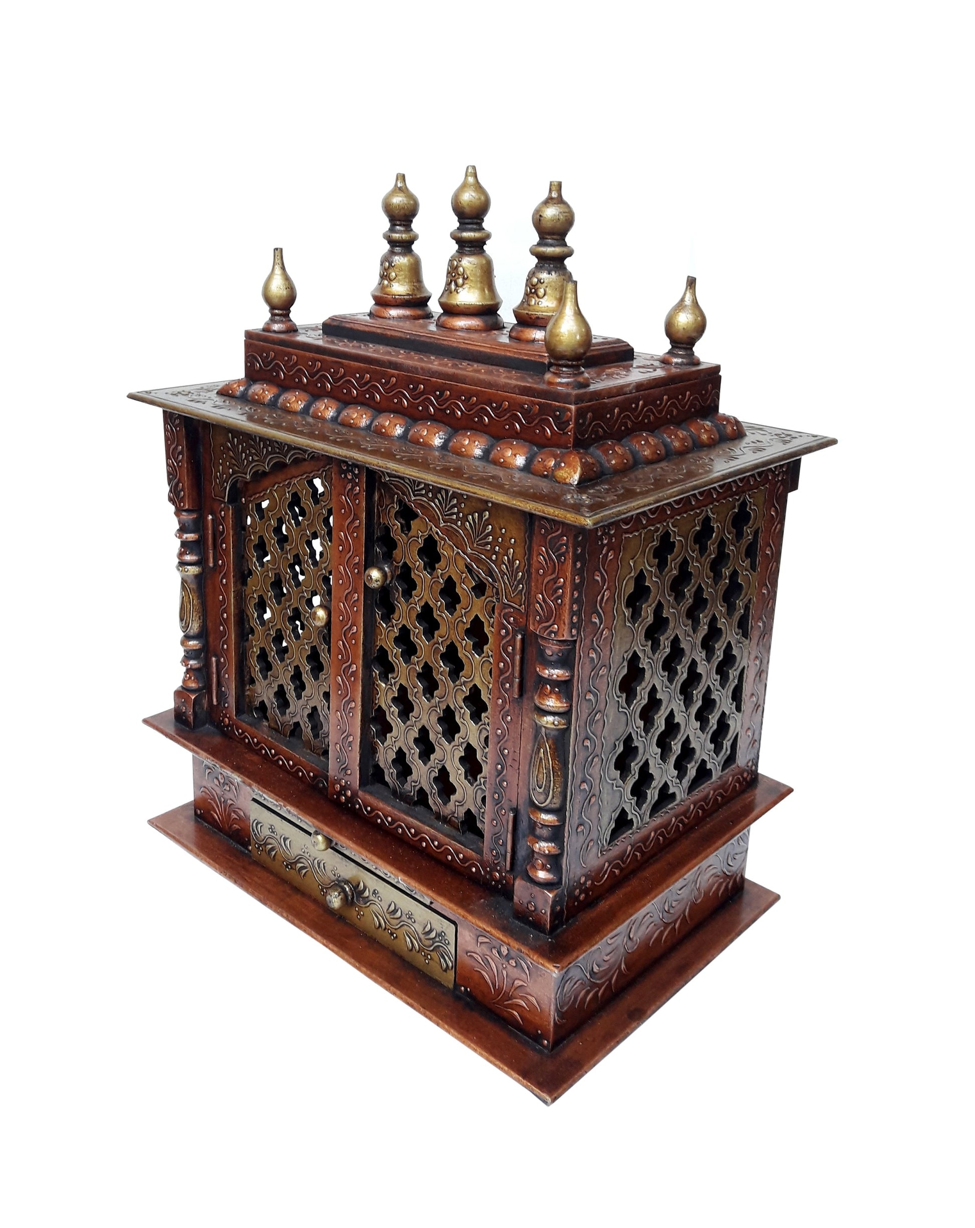 Wooden Temple For Home/Pooja Ghar Mandap/Wall Mount Mandir With Door/Traditional Handcrafted Temple/Decor For Festival Home Office Shop