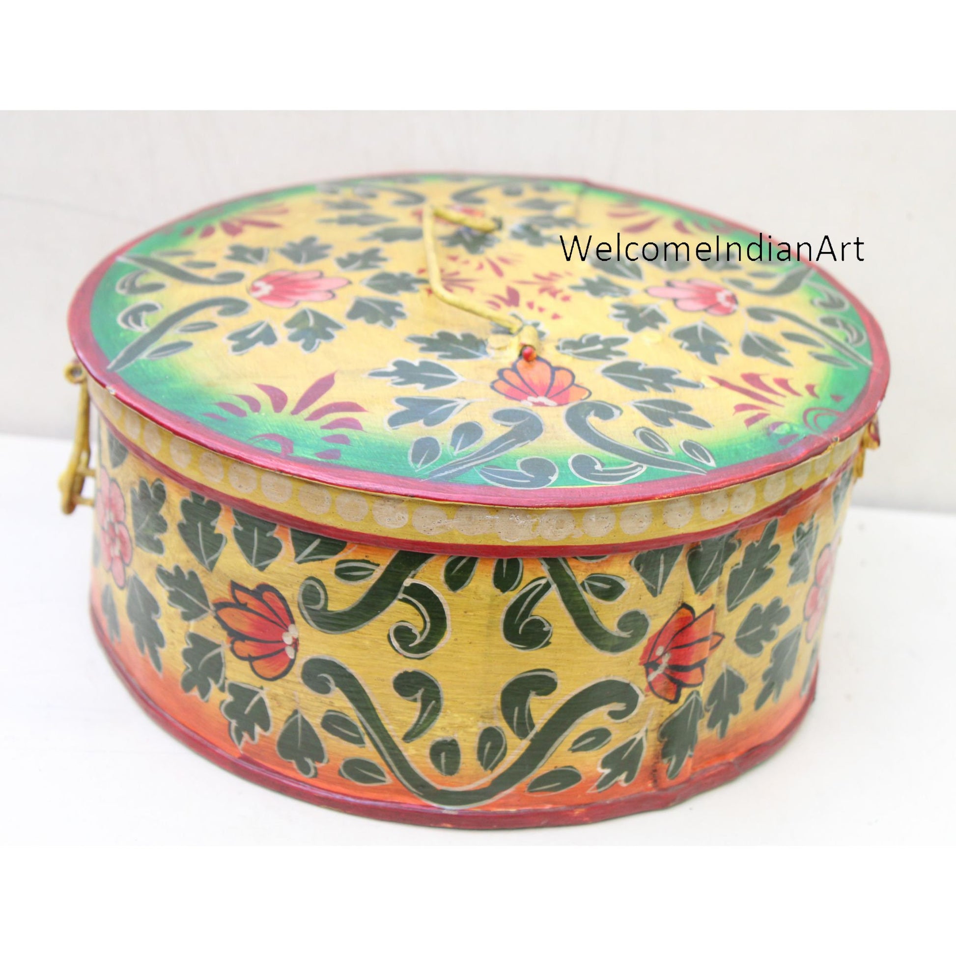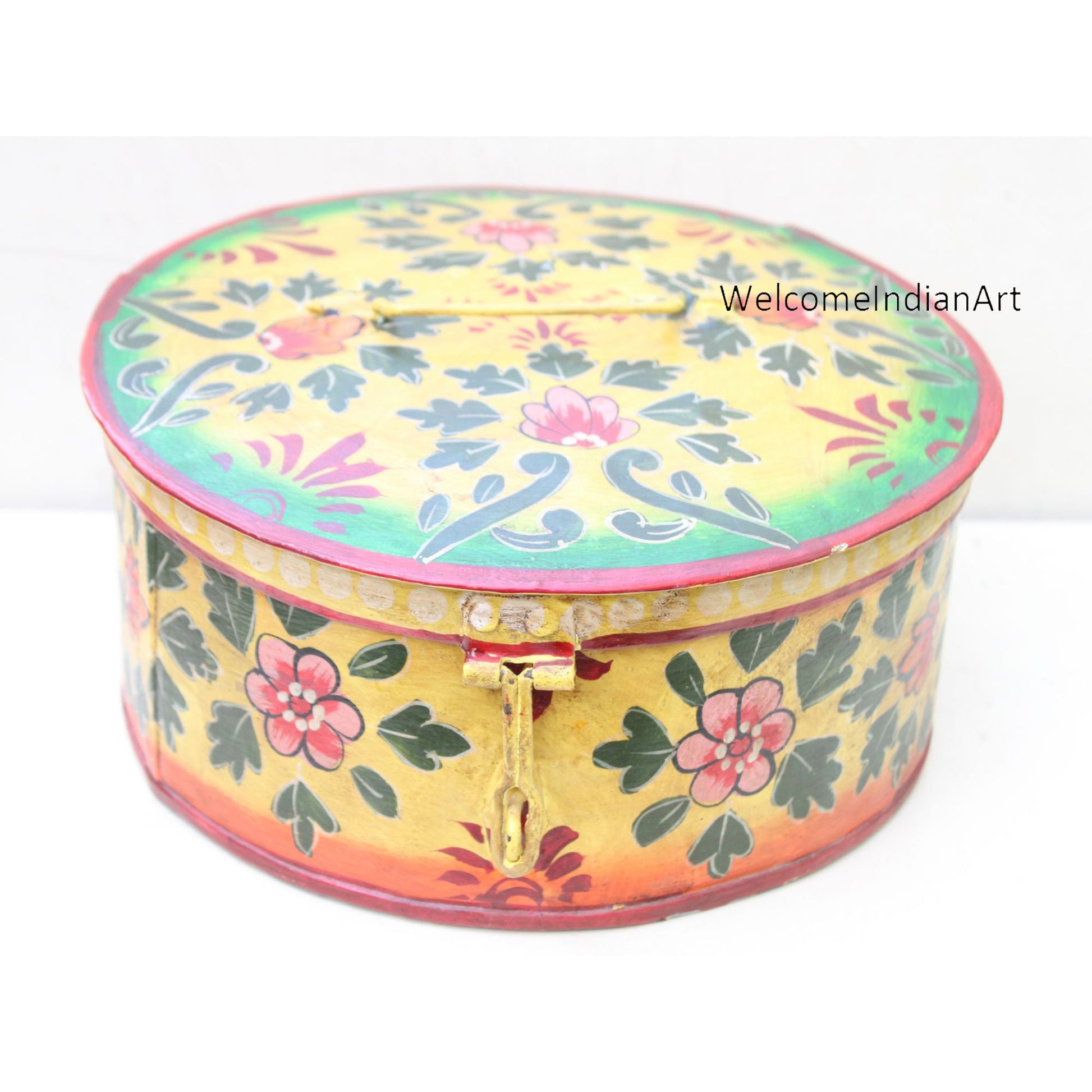 Antique Vintage Cast Iron Floral Hand Painted Box Pot Grandparents Gift Jewelry Sandook Toast Bread Box Iron Indian Home Decor