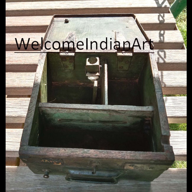 This is a vintage wooden crate with a lid, painted in vibrant color. It could make a nice home decor accent or could be used as a photo prop. It is in fair vintage condition This would make a lovely keepsake box for all your little treasures