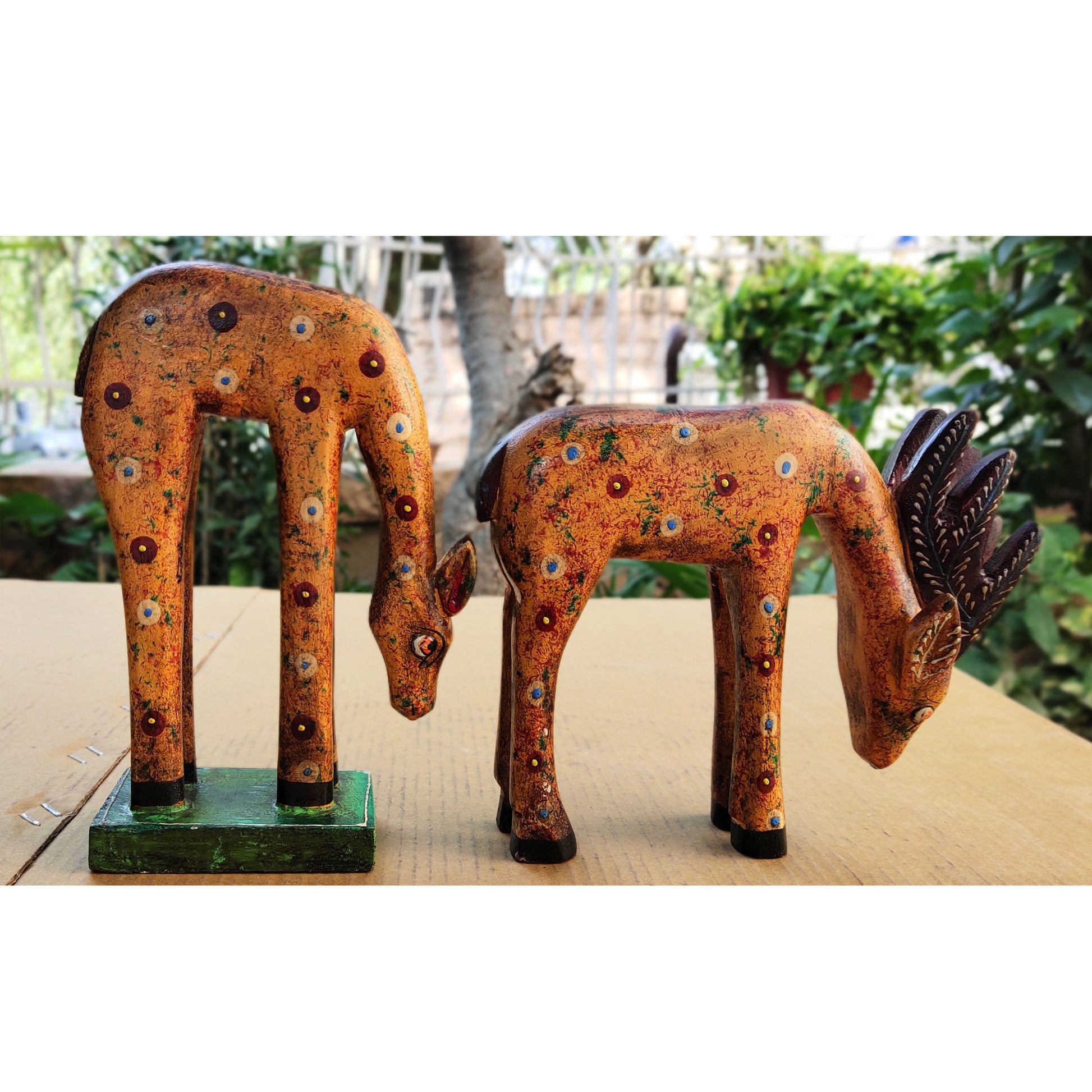 Cute Wooden Reindeer Deer Statues S/2, Figure Showpiece, Table top decor, Handmade Carved Animals, Traditional Indian Style Educational Arts