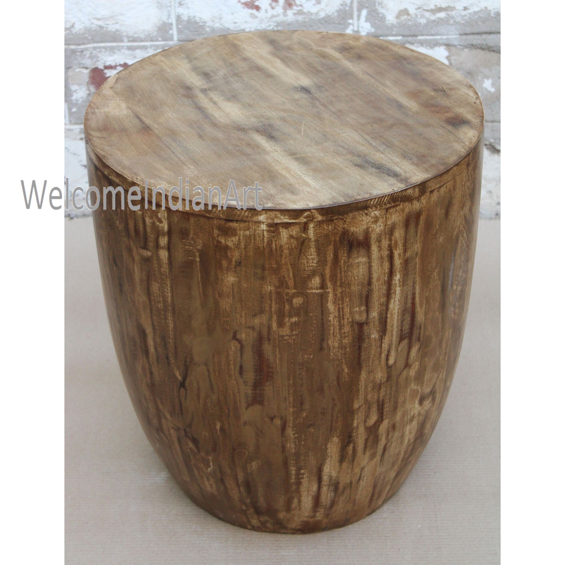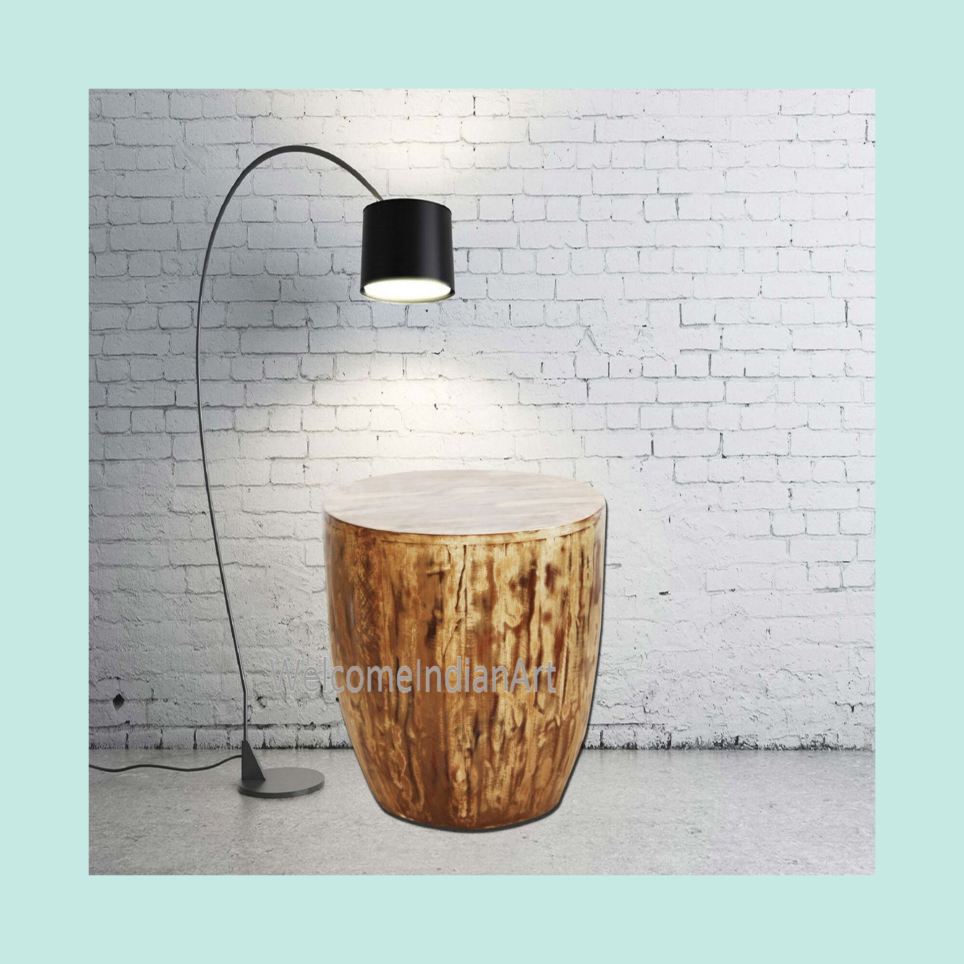 Handmade Wooden Antique Brown Color Drum Coffee Tea Table Suitable For Floor Balcony Christmas Living Room Home Decor Indian Handicraft Art
