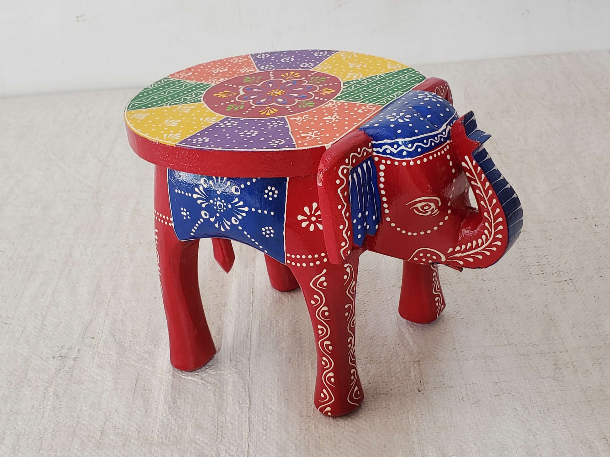 🎨 Hand-painted Rajasthani Wooden Elephant Stool – a fusion of utility and artistry.