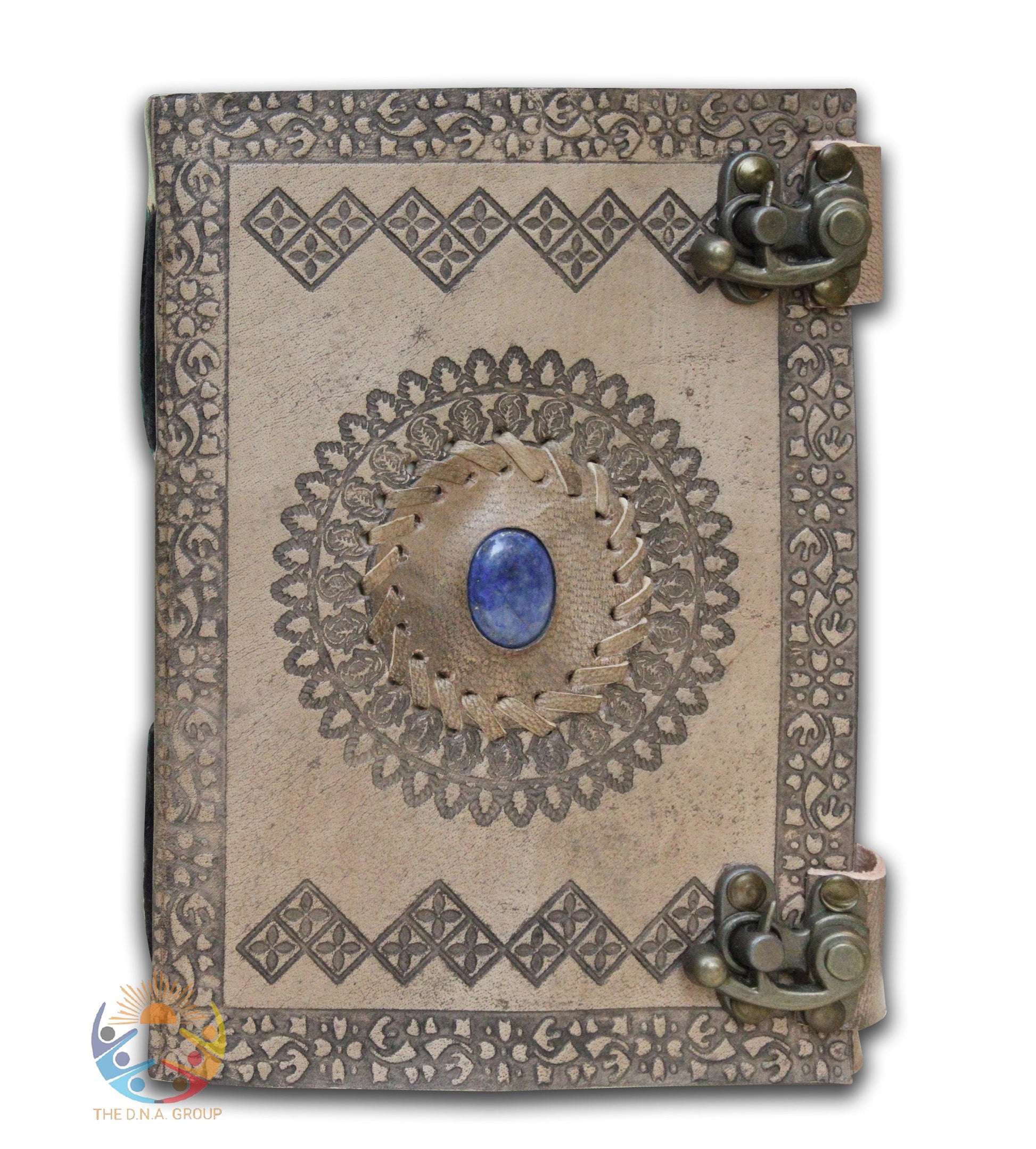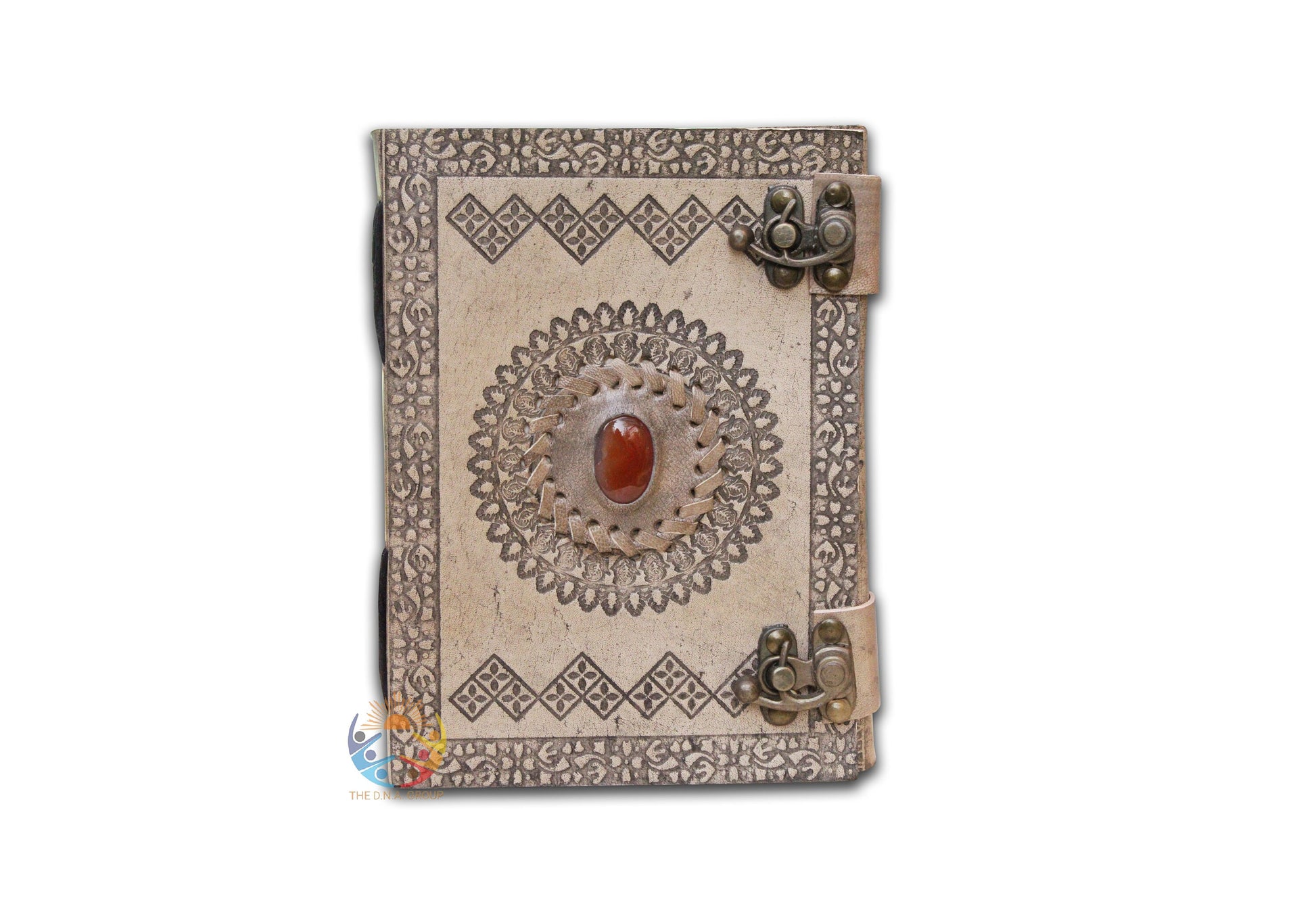 Leather Journal Diary A5 Semi Precious Stone C-Clasp Closer 200 Handmade Recycled Paper