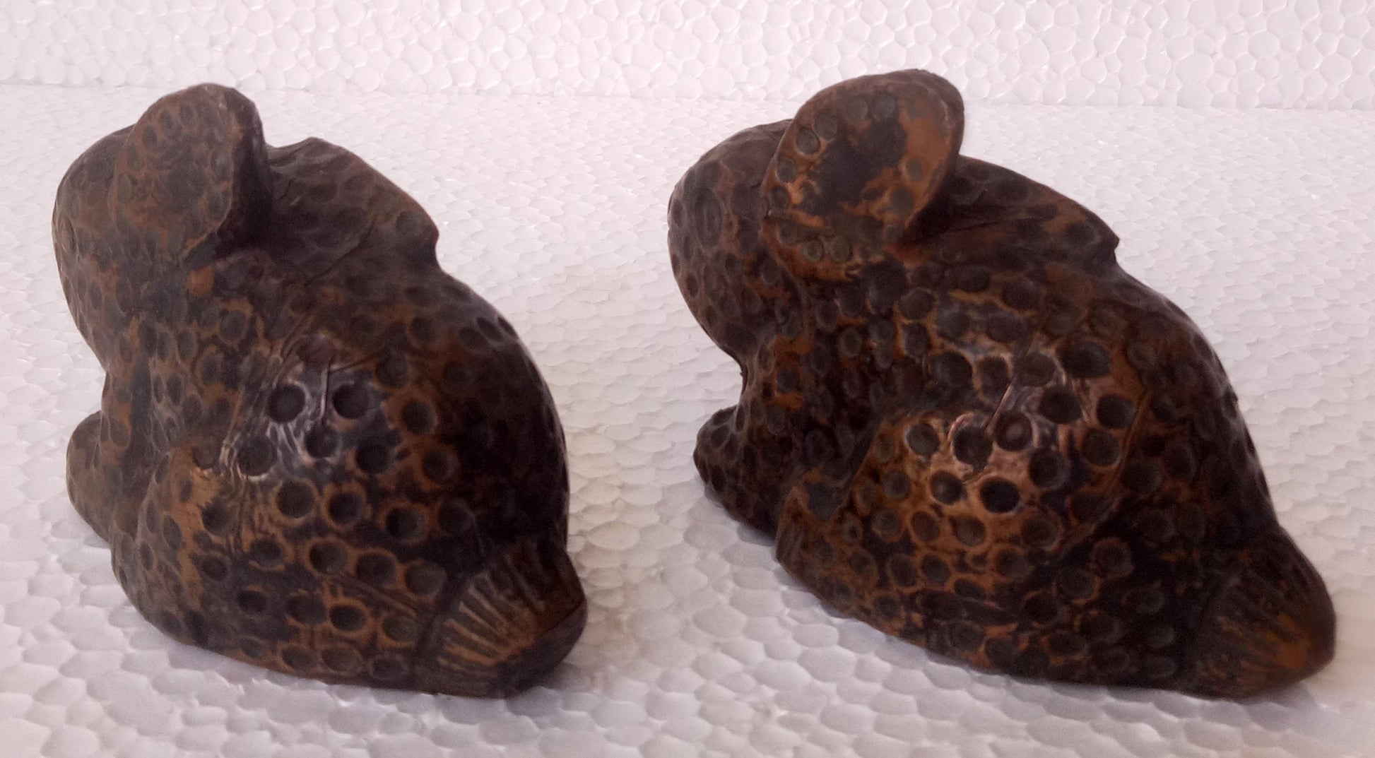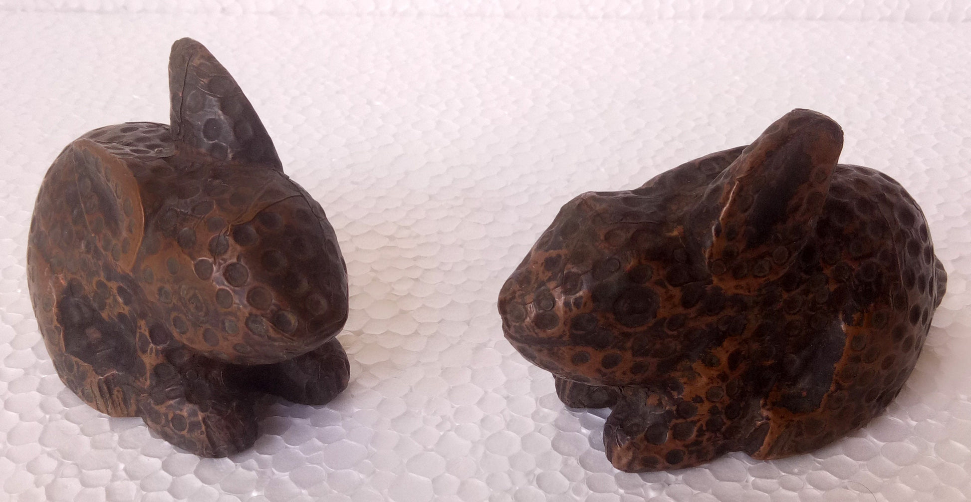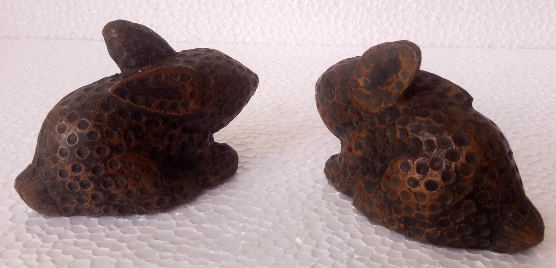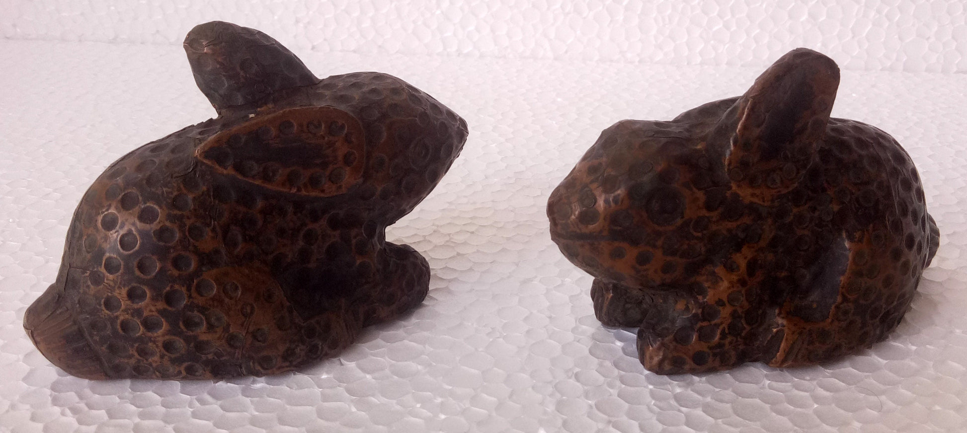 Old Wooden Rabbit Hand Made Carved Hand Craft Copper Fitted Rabbit Figurine Pair by Indian Arts