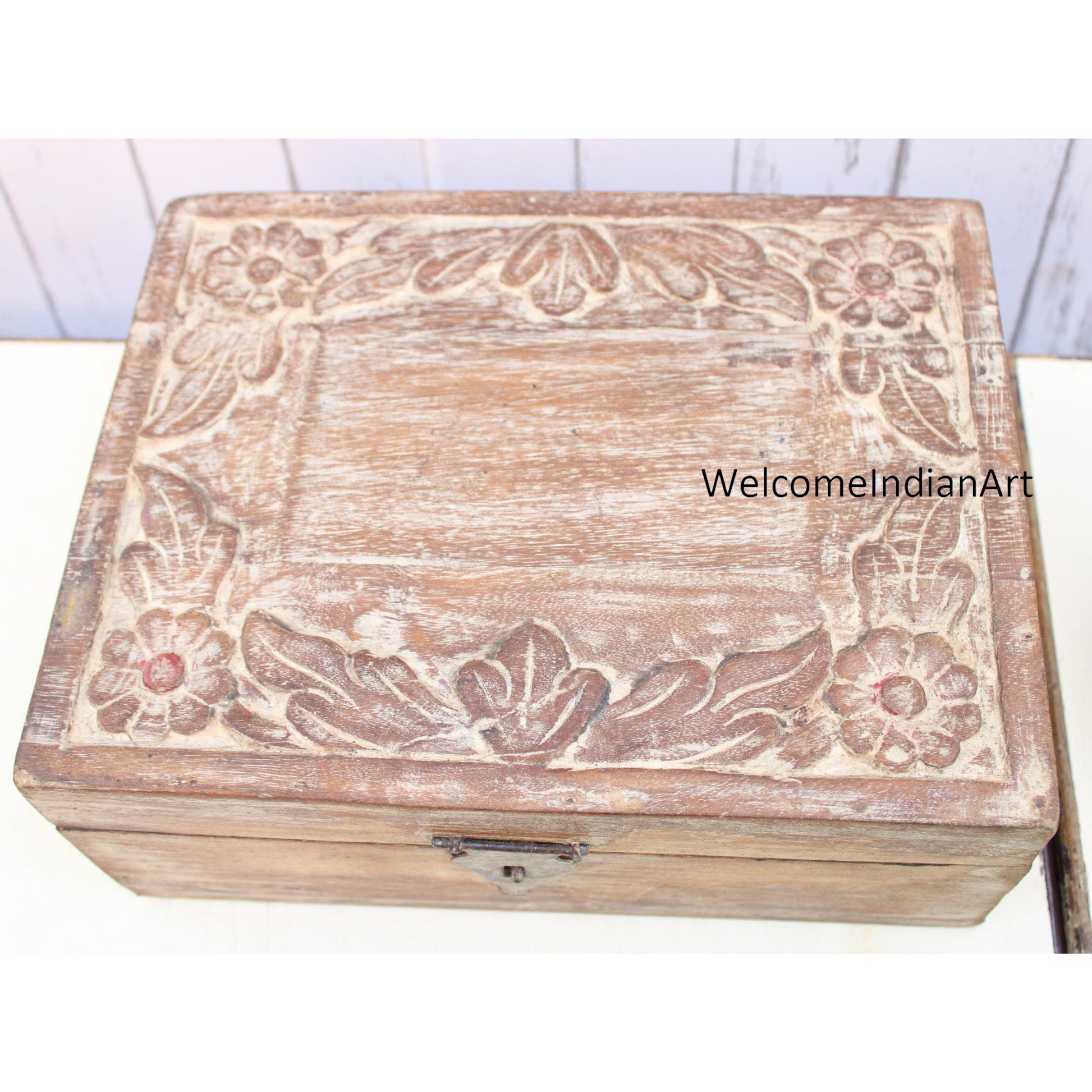 Unique design Handmade Wooden carving box for jewelry storage set of 2 or 1