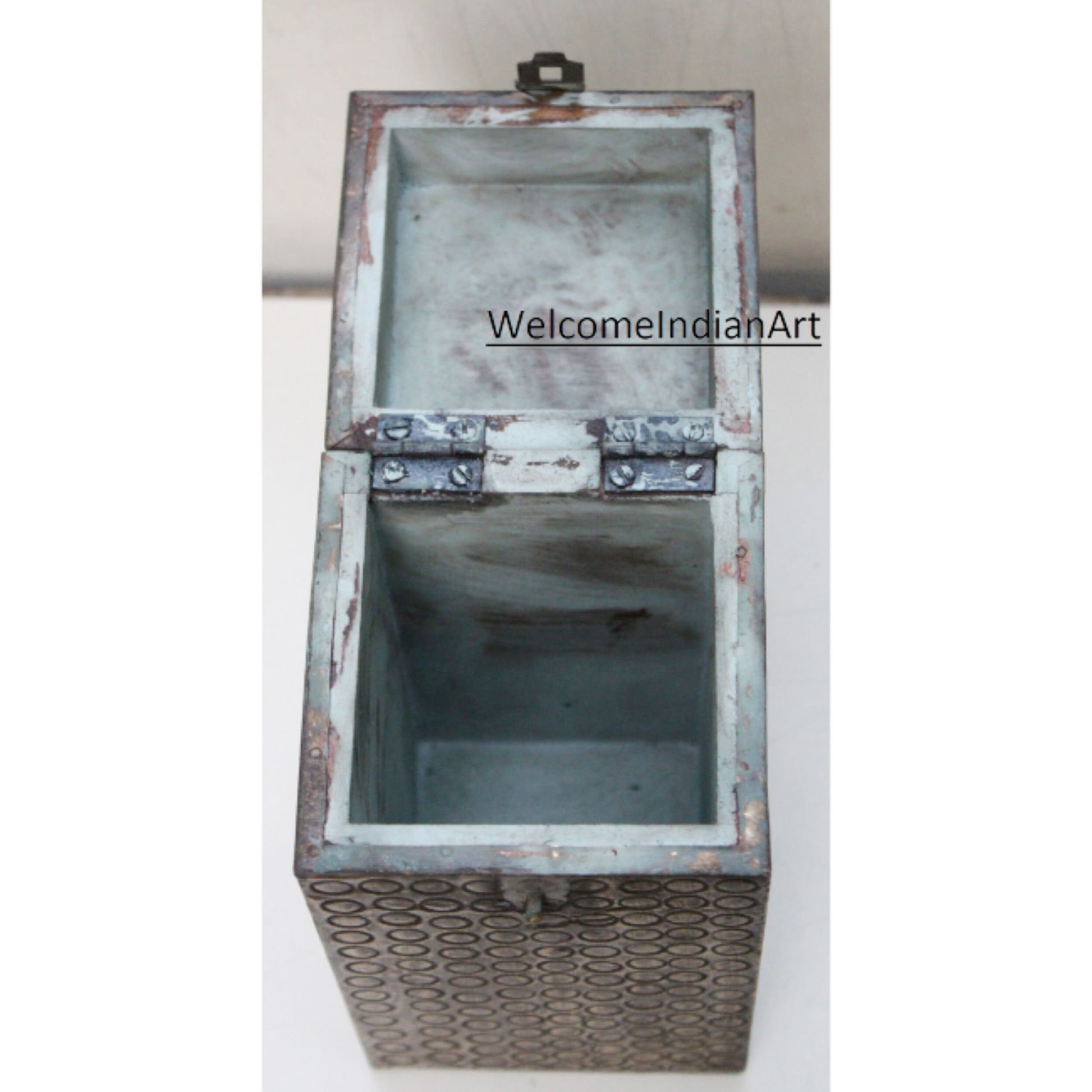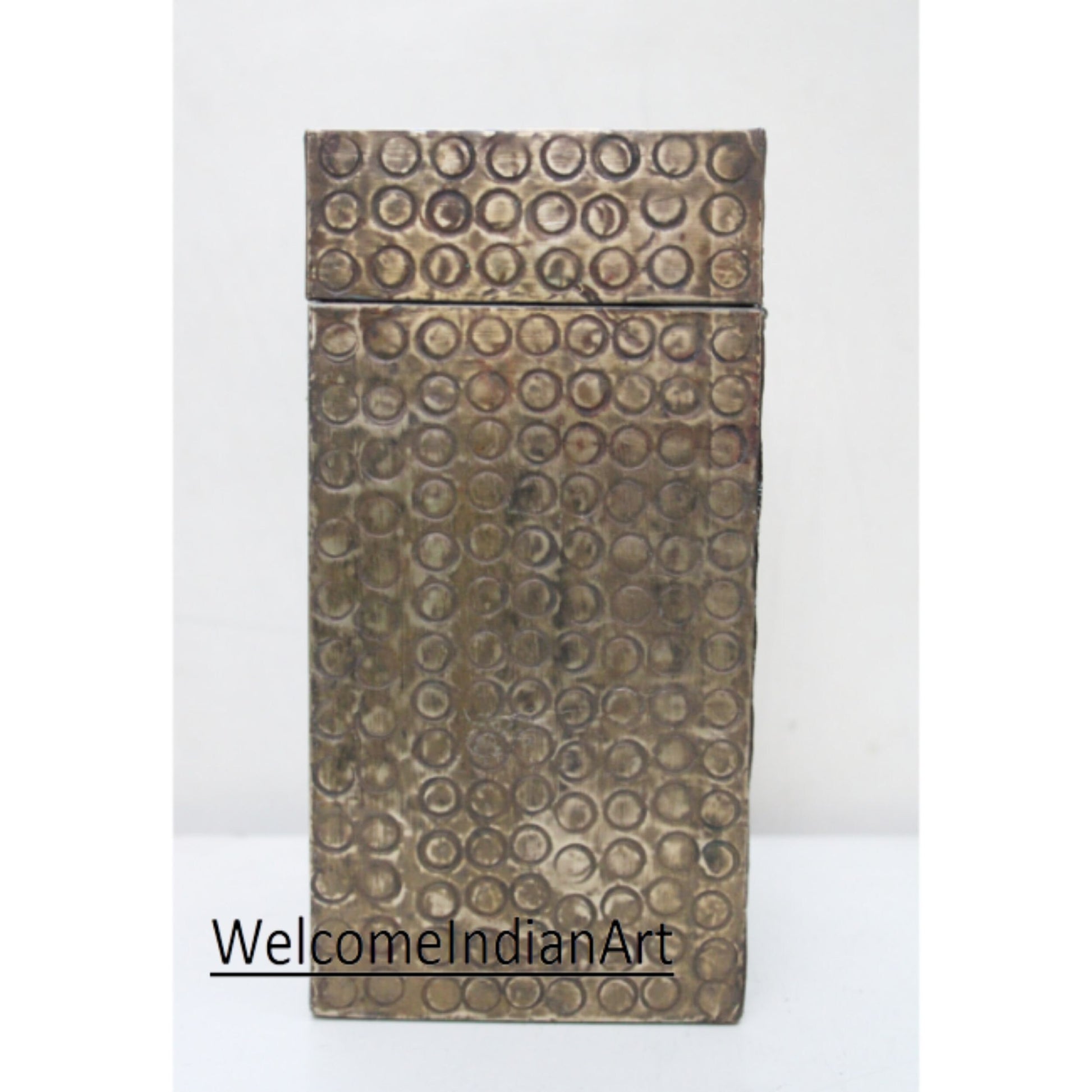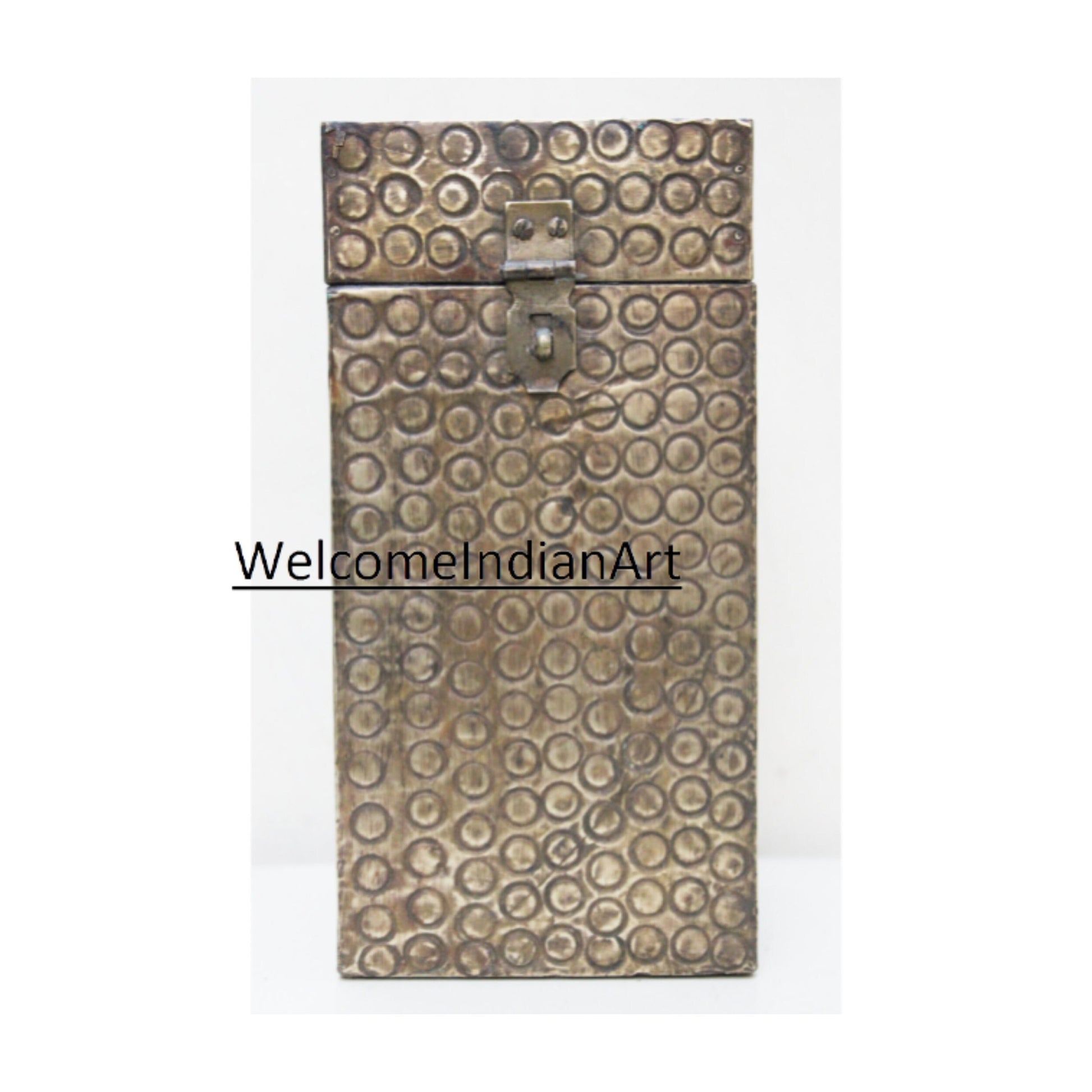 Wine Bottle Case liquor Box Wooden Wine Box Brass Work Vintage Handmade Old Indian Decor Art