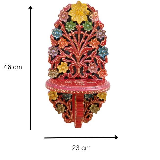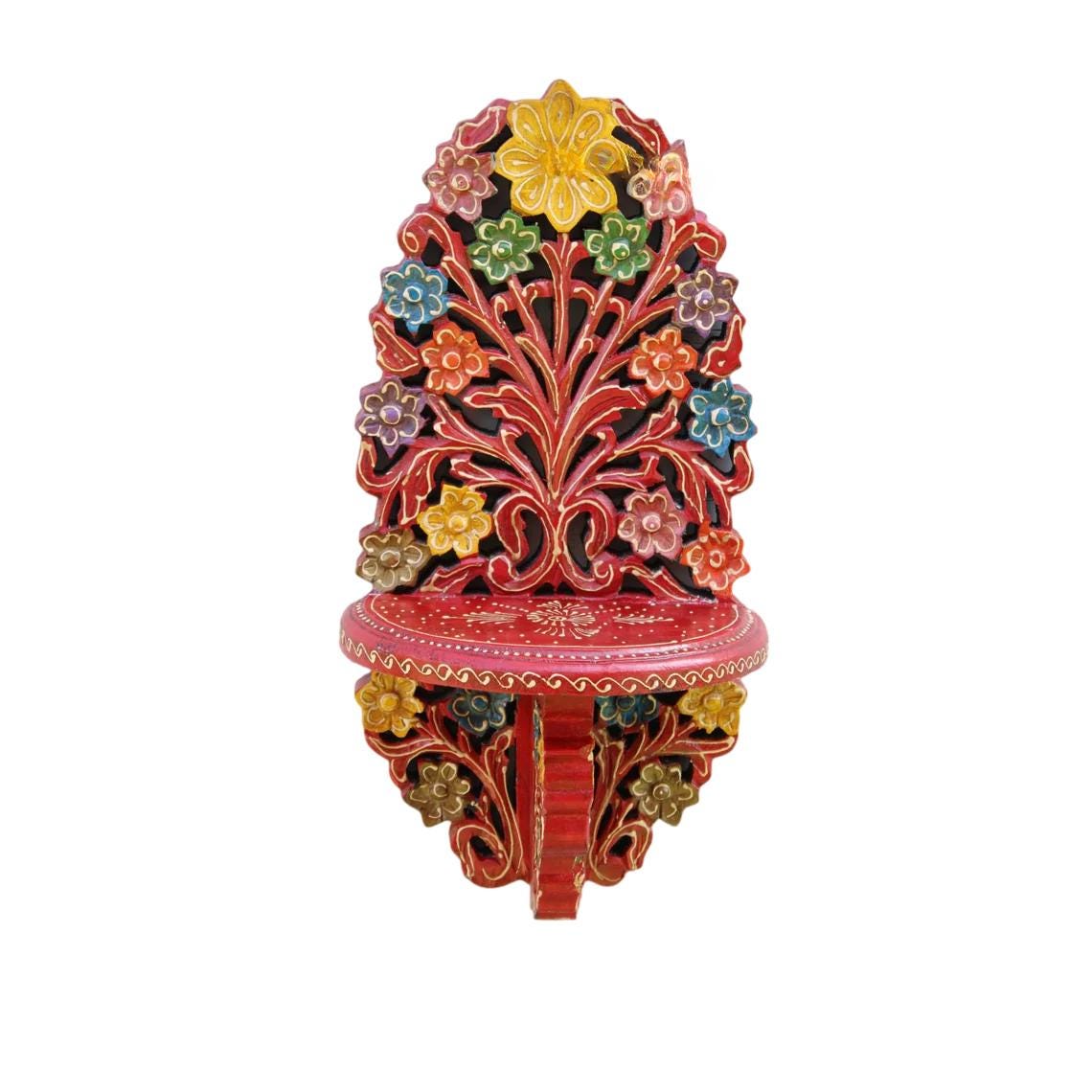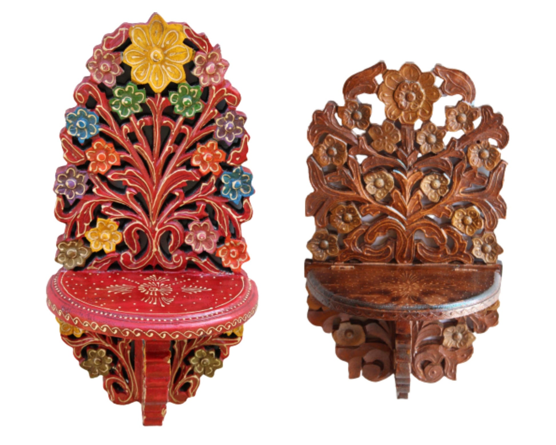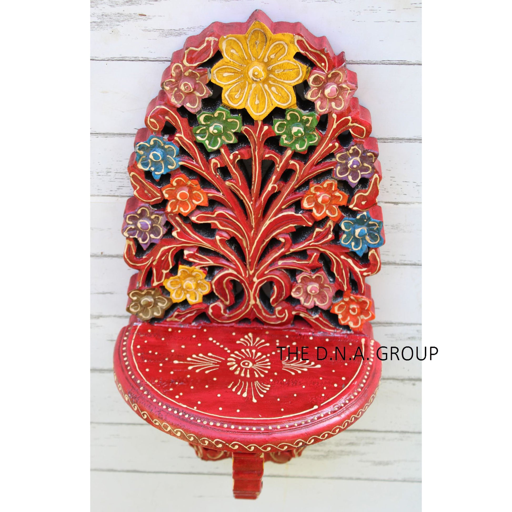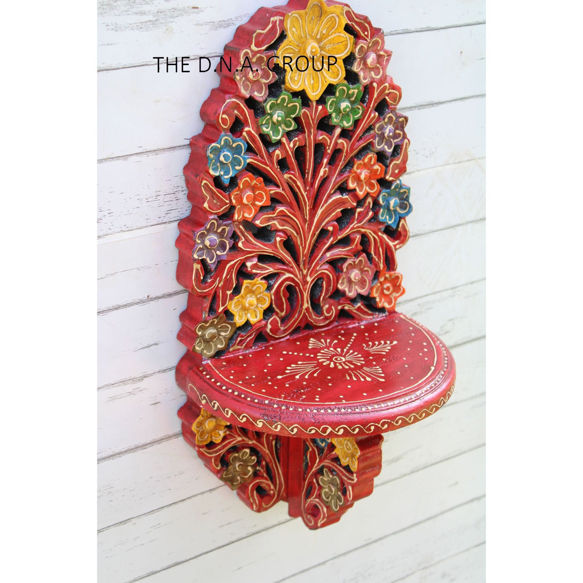 Wood Wall Shelf/Wooden Wall Rack/Carved Wood Bracket/Vintage Plant Holder/Display Shelf/Clock Candle Shelf/Indian Painted Home Decor.