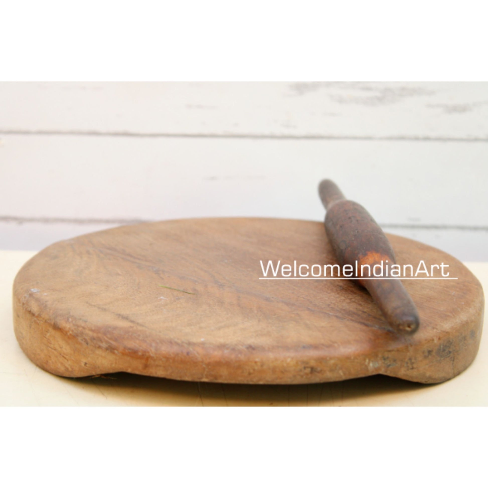 Wooden Chakla Belen, Old Used Rolling Board Stand, Chapati Roti Maker Rolling Pin, farmhouse Cottage Kitchen Decor, Wood Mortar Rustic Set