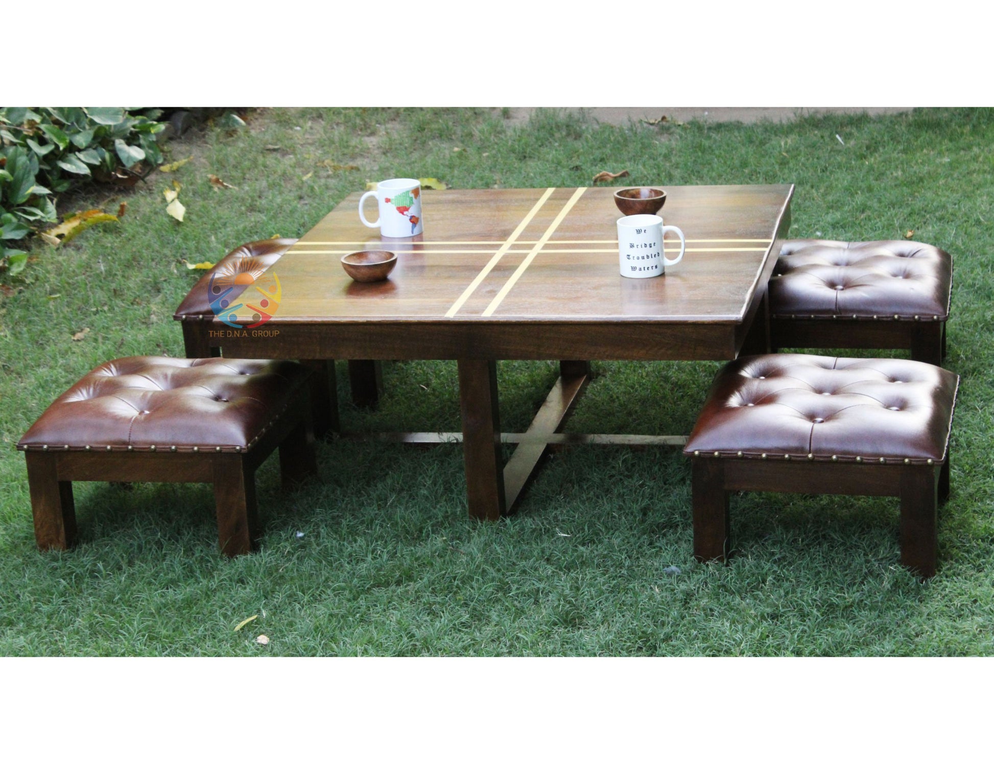 4 Pc Stool / Bench Size - 16 x 16 x 11 Inches ( Approx.) with Leather's Fine Upholstery work.