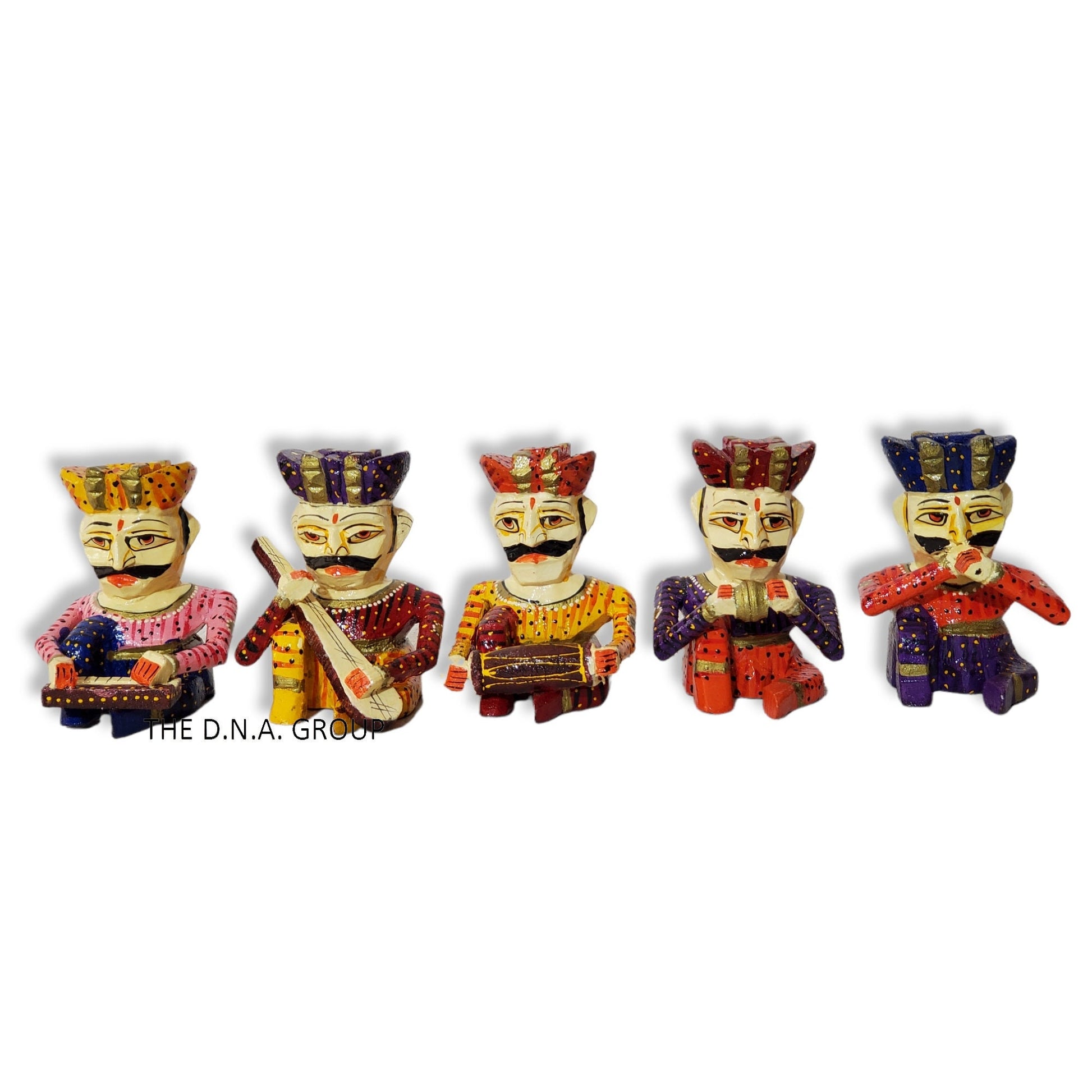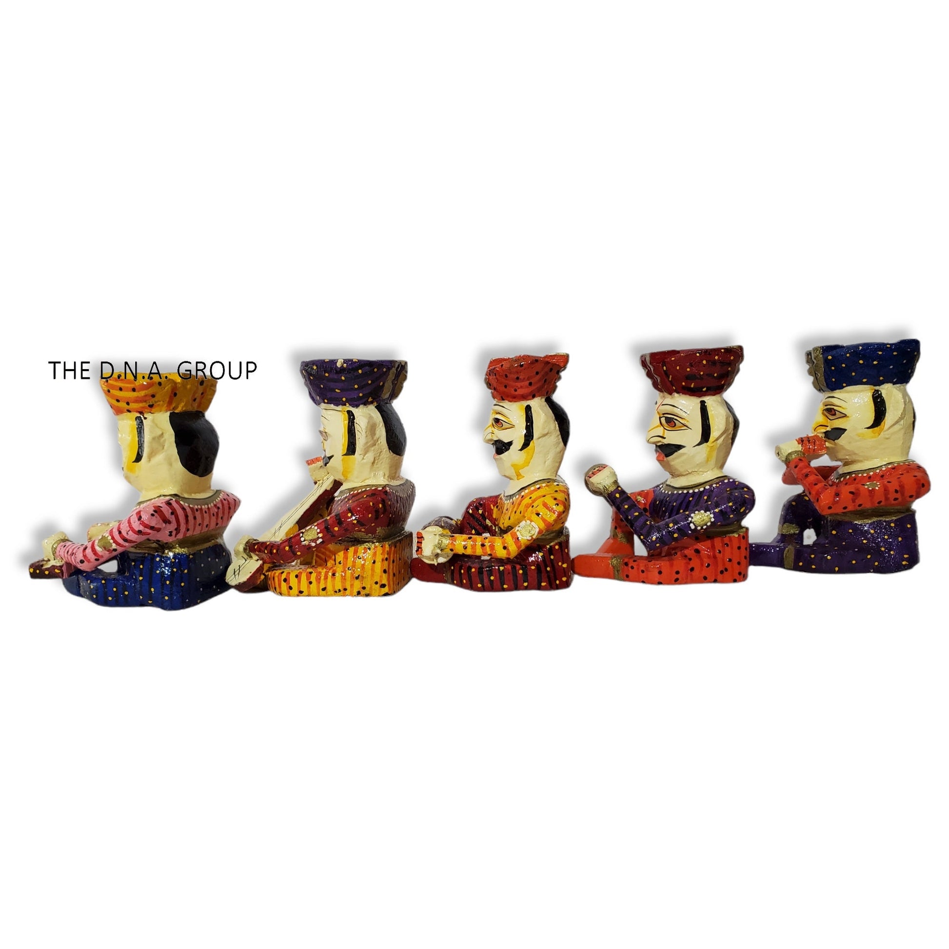 Wooden Hand Painted Statue Rajasthani Traditional Sitting Musician Bawla Set of 5 Gift Statue Home farmhouse Decor