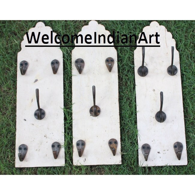 Vintage Key Hanger Unique Design Antique Carving Work Beautiful Wall Hook Key Holder Old Handcrafted Decorative Art Set of 3 or 2