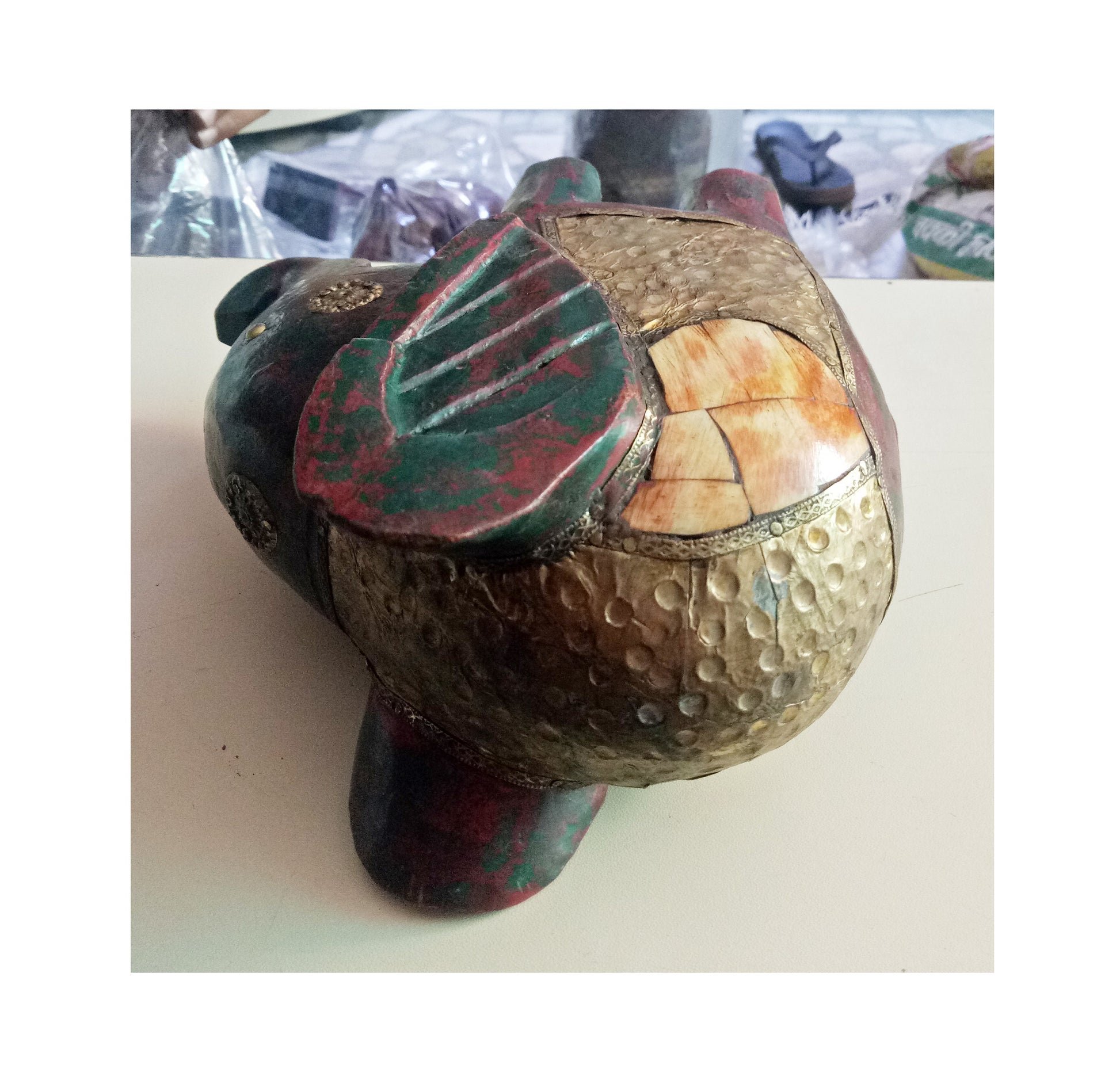 Wooden Painted Elephant With Brass Model 1